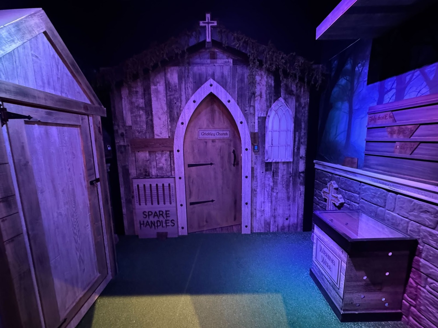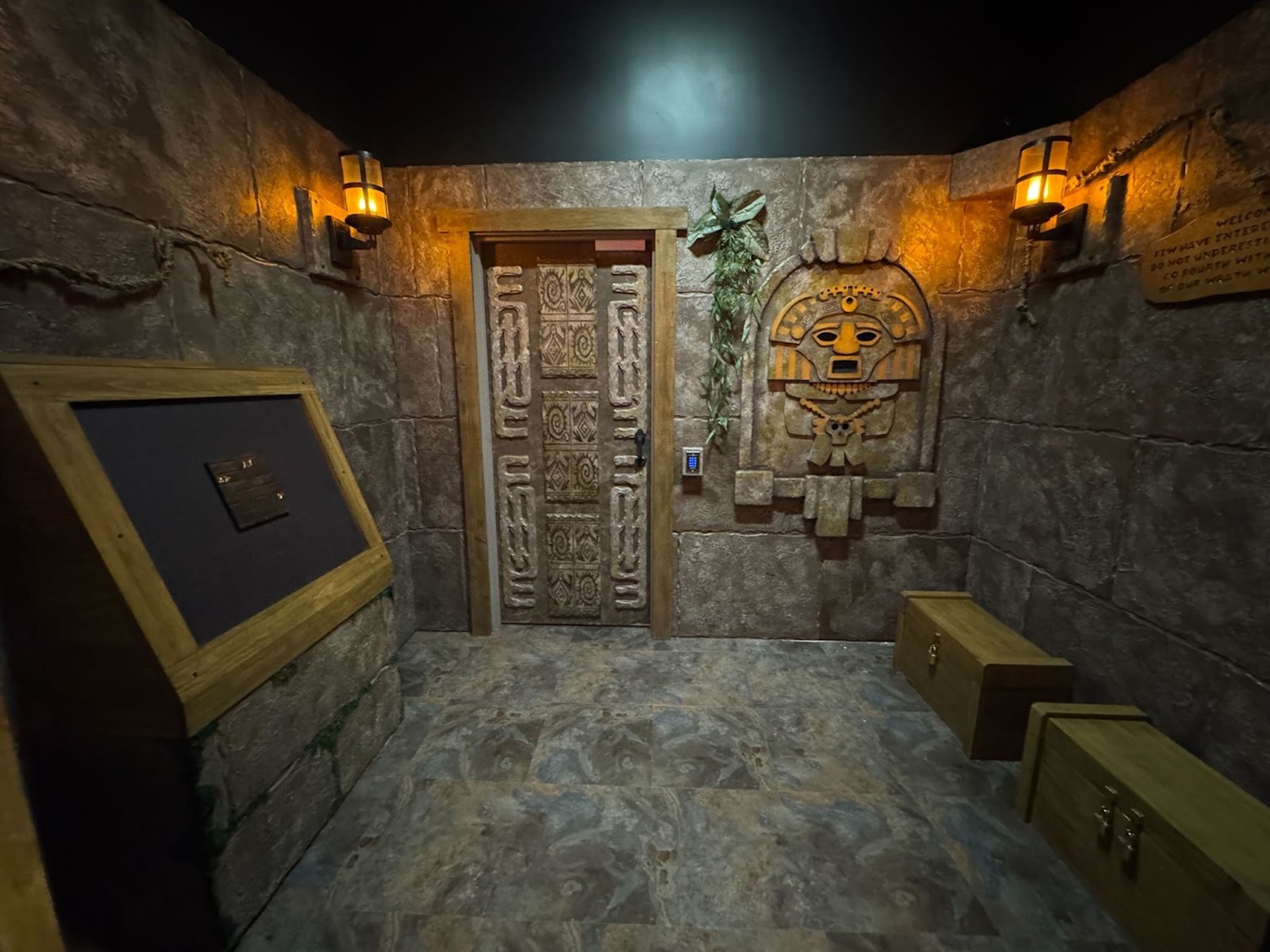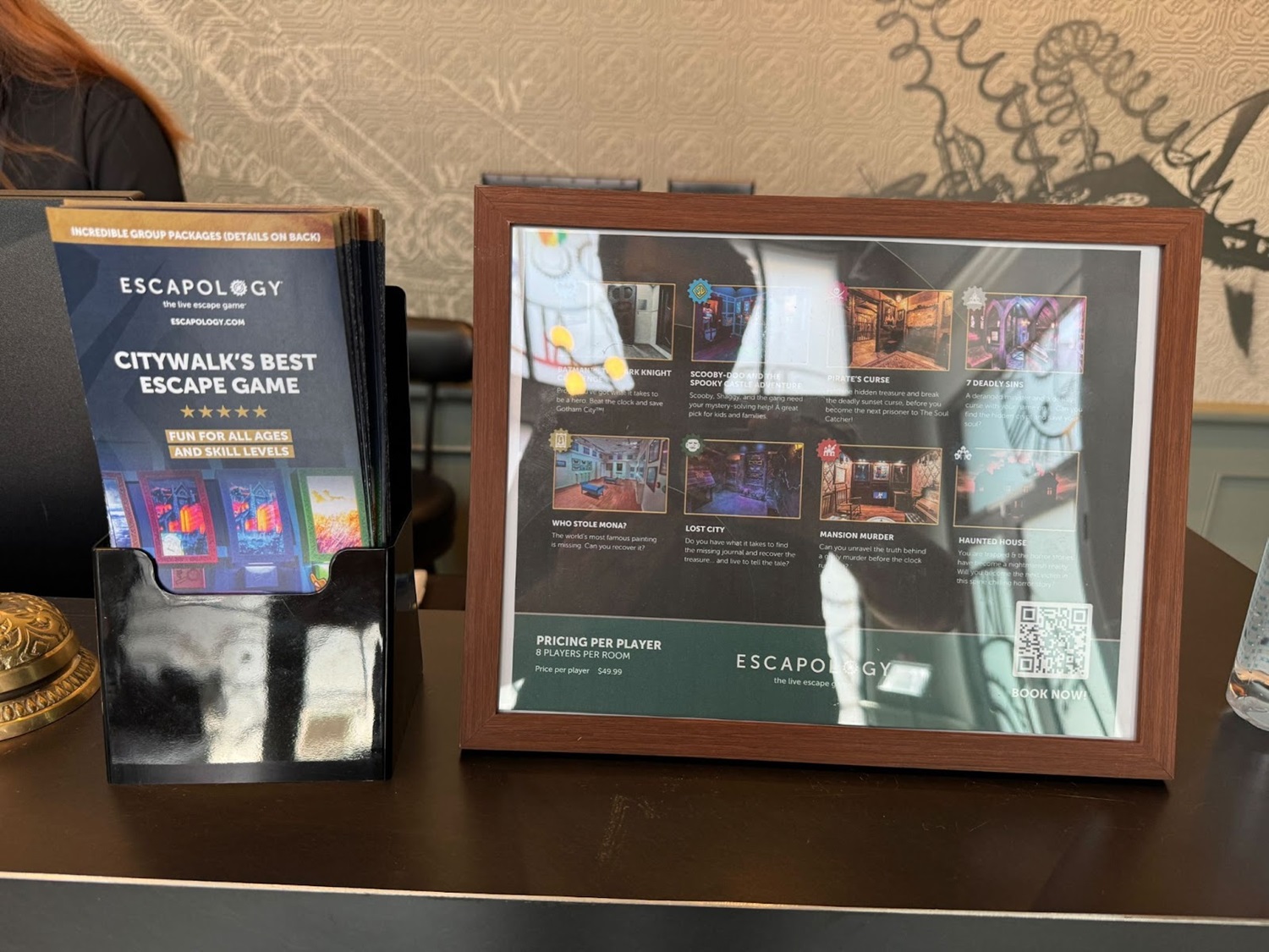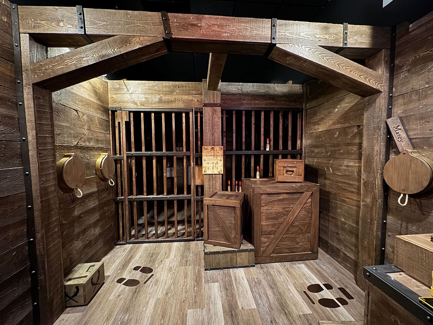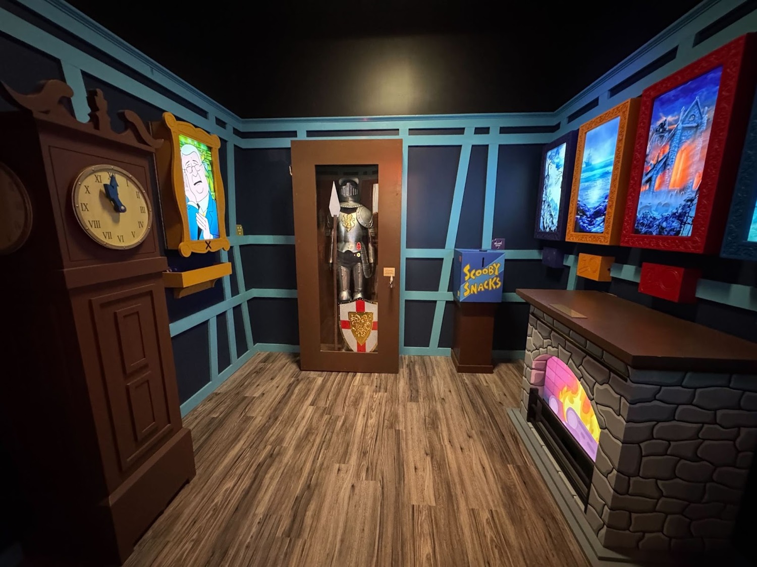 This new Escapology location is made up of eight different escape room experiences: there’s Haunted House (I was told this is already the most popular room and that popularity is likely to increase as Halloween season approaches in Southern California), A Pirate’s Curse (self-explanatory), Mansion Murder (taking a cue from murder-mystery stories like Clue and Knives Out), Lost City (with theming similar to Nickelodeon’s Legends of the Hidden Temple game show), 7 Deadly Sins (another horror-themed room), Who Stole Mona? (encouraging guests to solve an art heist with a real laser maze), and two rooms inspired by licensed properties– Batman: The Dark Knight Challenge and Scooby-Doo and the Spooky Castle Adventure.