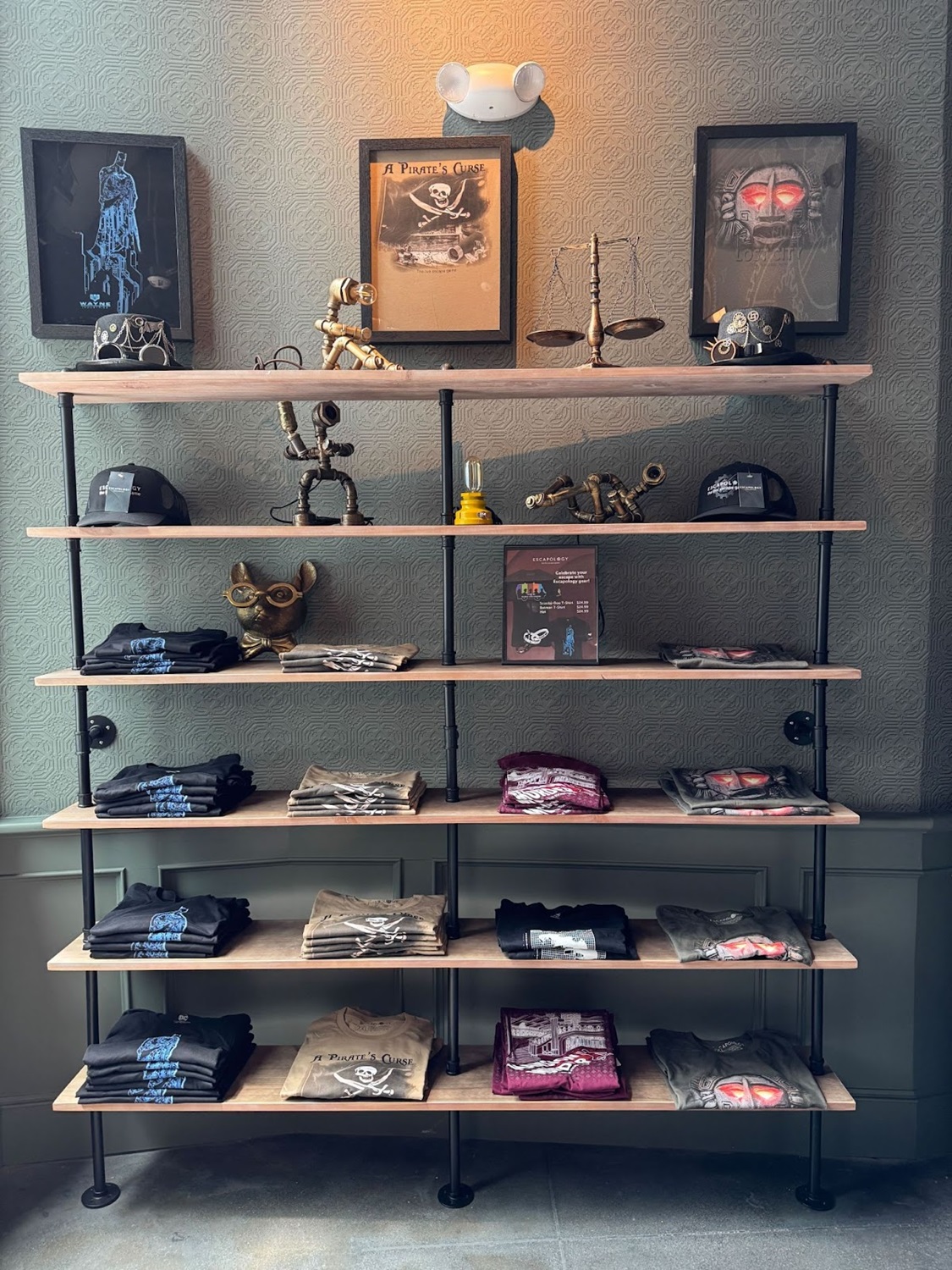Inside the lobby you’ll find more decor adding to Escapology’s steampunk theme, plus assorted merchandise and helpful information about the escape rooms at the front counter.