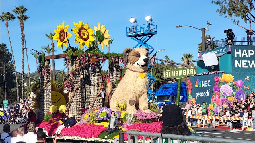 One of the standout moments came when we had to pause briefly for the Tournament of Roses judges as they scrutinized the "Love 2 Yeu" float, which celebrated the Vietnamese Lunar New Year. This float went on to win the Grand Marshal Award for Outstanding Creative Concept and Float Design. We also got a closer look at the San Diego Zoo’s float, which would later take home the Sweepstakes Trophy—the highest honor at the Rose Parade. My personal favorite was the stunning Lionfish made of pepper flakes—its intricate design was mesmerizing especially when viewed at such close distance.