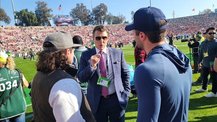 Our ESPN Experiences Beyond the Rose adventure kicked off with lunch on the sun-drenched patio of the Westin Pasadena, just a block off the historic Route 66/Colorado Blvd parade route. As we enjoyed a delicious buffet, we were joined by ESPN radio announcers Ian Fitzsimmons and Kelly Stouffer, along with SportsCenter anchor Arda Öcal, who remained with us throughout the adventures. Ian and Kelly had us in stitches, sharing hilarious anecdotes from their radio careers while giving us their insider perspectives on the two teams competing in the Rose Bowl, having just wrapped up Media Day.