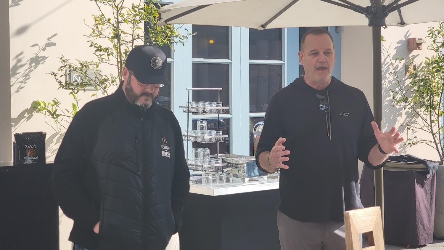 Our ESPN Experiences Beyond the Rose adventure kicked off with lunch on the sun-drenched patio of the Westin Pasadena, just a block off the historic Route 66/Colorado Blvd parade route. As we enjoyed a delicious buffet, we were joined by ESPN radio announcers Ian Fitzsimmons and Kelly Stouffer, along with SportsCenter anchor Arda Öcal, who remained with us throughout the adventures. Ian and Kelly had us in stitches, sharing hilarious anecdotes from their radio careers while giving us their insider perspectives on the two teams competing in the Rose Bowl, having just wrapped up Media Day.