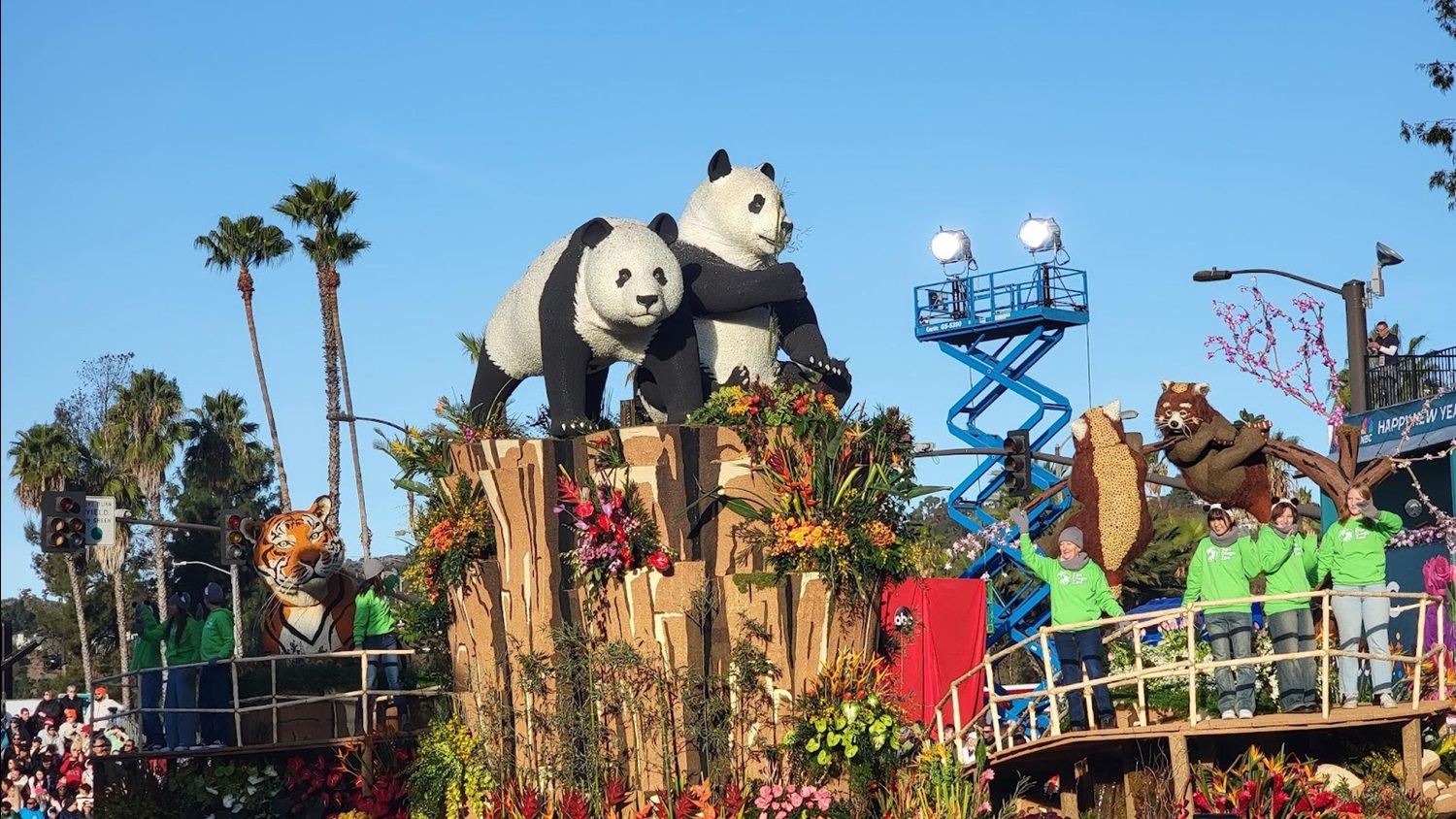 One of the standout moments came when we had to pause briefly for the Tournament of Roses judges as they scrutinized the "Love 2 Yeu" float, which celebrated the Vietnamese Lunar New Year. This float went on to win the Grand Marshal Award for Outstanding Creative Concept and Float Design. We also got a closer look at the San Diego Zoo’s float, which would later take home the Sweepstakes Trophy—the highest honor at the Rose Parade. My personal favorite was the stunning Lionfish made of pepper flakes—its intricate design was mesmerizing especially when viewed at such close distance.
