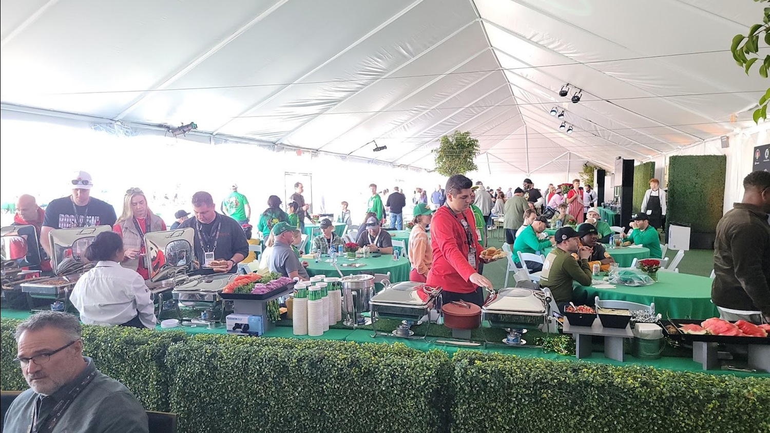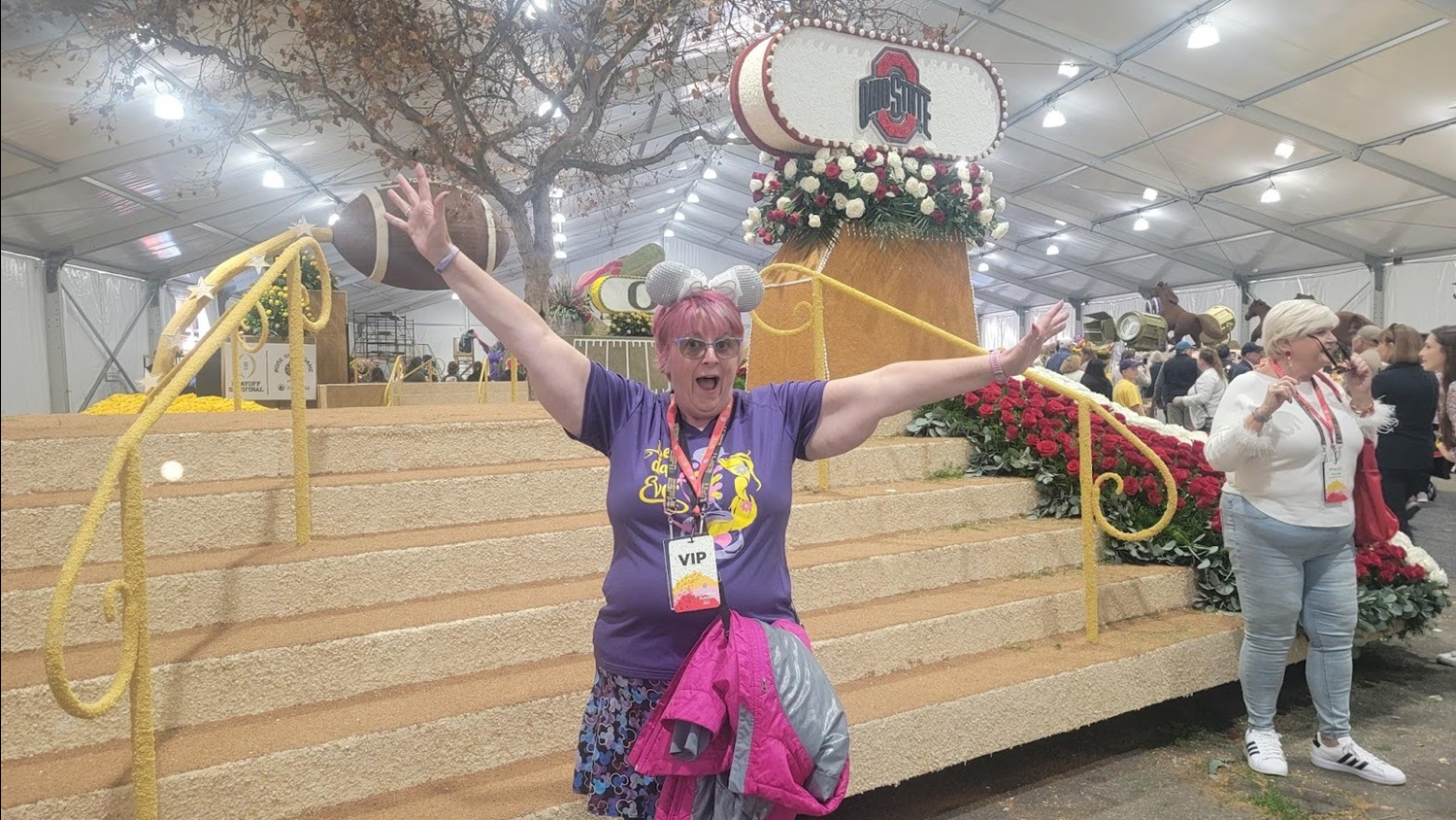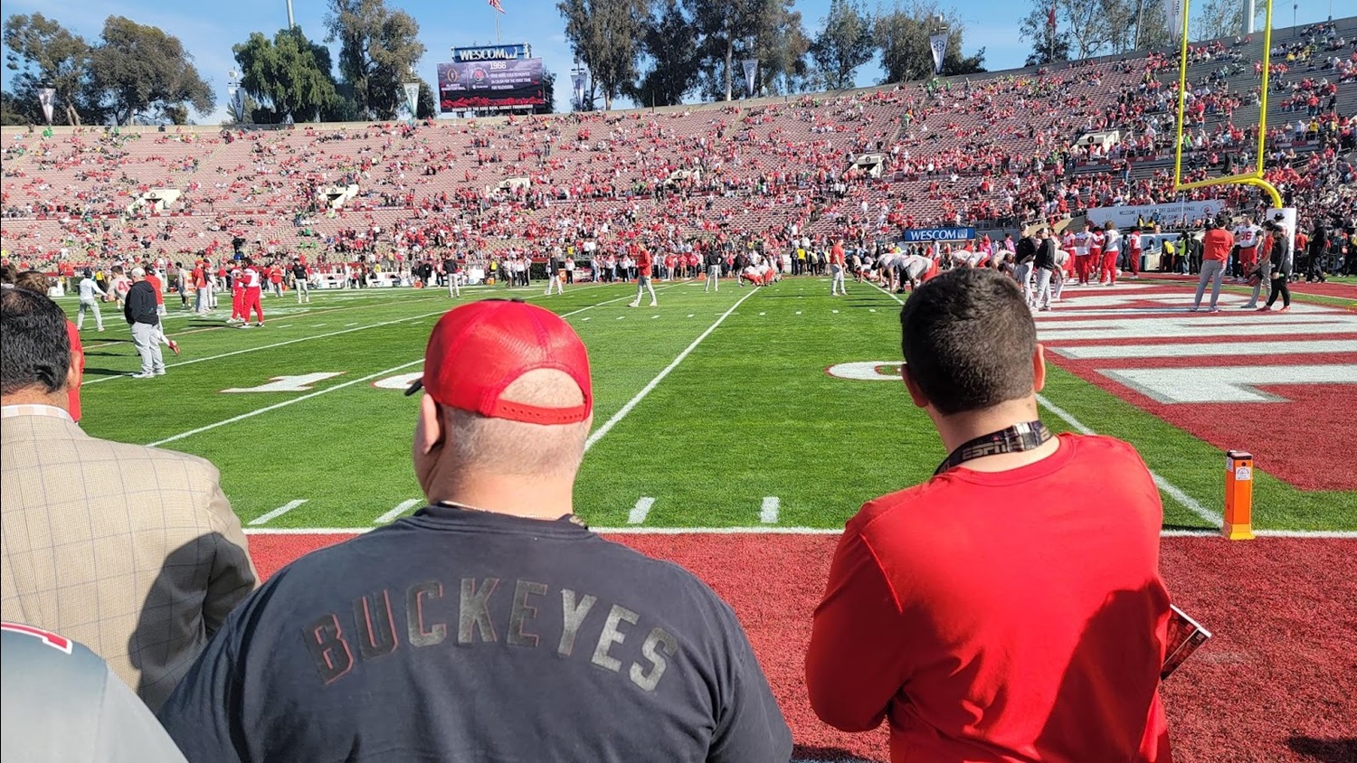 The 2025 Rose Parade theme was “Best Day Ever," and it truly was shaping up to be just that. After the parade, we headed to the Rose Bowl’s Touchdown Village. This exclusive area, only accessible through select packages, offered a VIP experience with a fantastic buffet featuring Angus sliders, brats, quesadillas, and more, plus a fully stocked bar. We also had a surprise visit from Ohio State alum and wide receiver Cris Carter, who posed for photos and chatted with fans.