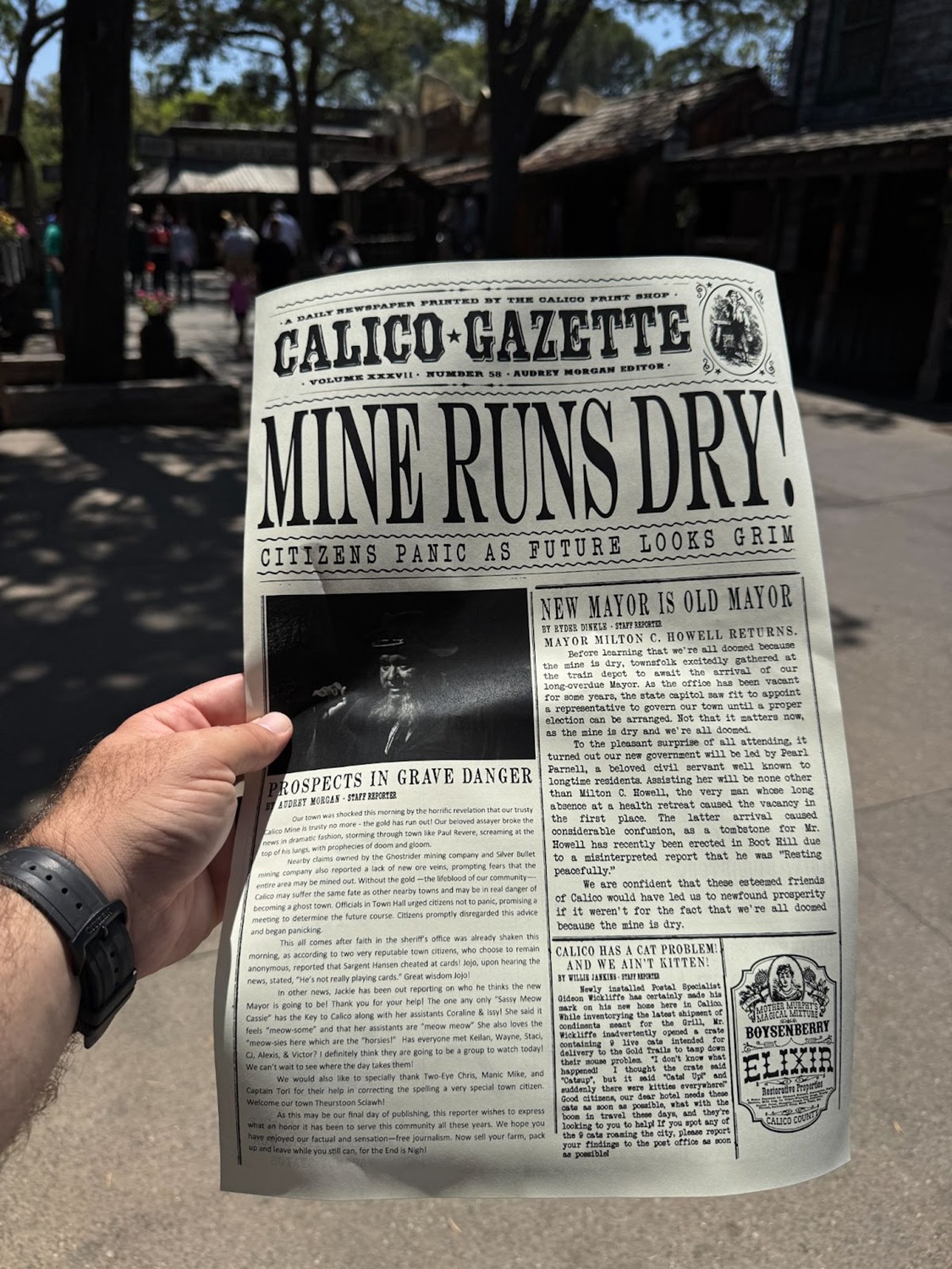 At one point the members of my group even got our names in the Calico Gazette newspaper, and later on I was briefly granted the key to the city by Mayor Milton C. Howell for having helped out so many townspeople throughout the day.