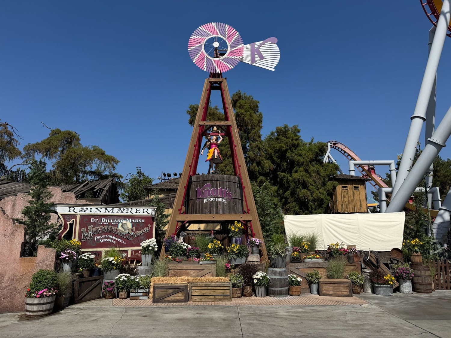 Rewinding time a little, we arrived at the entrance to Knott’s Berry Farm to find the usual attractive signage and decor around the front of the park.