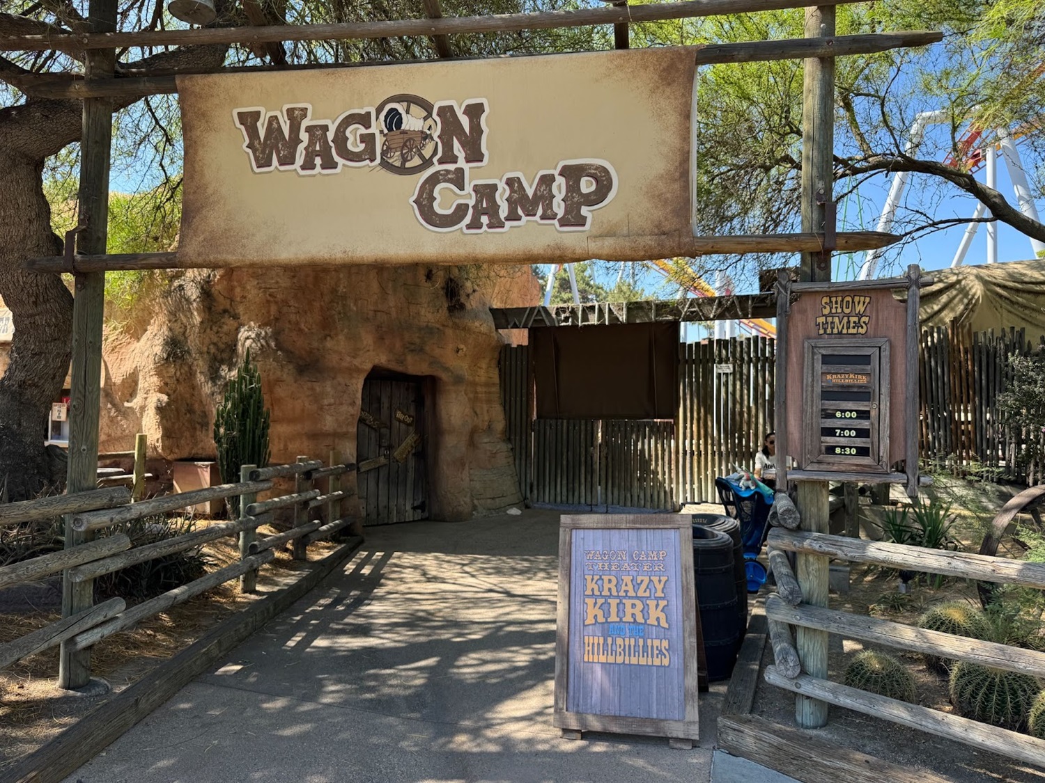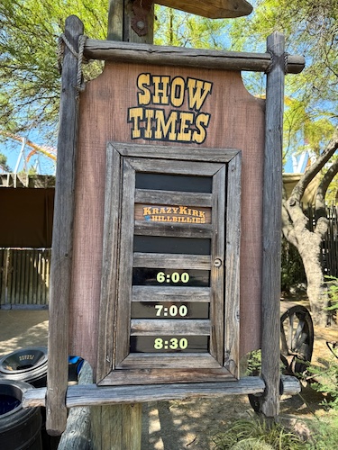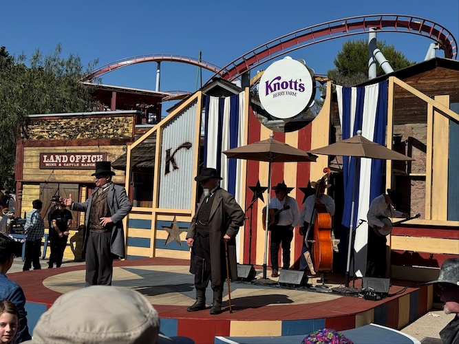 Other live shows available around Knott’s Berry Farm during Ghost Town Alive! and Knott’s Summer Nights are Miss Cameo Kate’s Western Burle-Q Revue in the Bird Cage Theatre, Mic Dangerously and the Royal We on the Calico Mine Stage, and Krazy Kirk and the Hillbillies (formerly Disneyland’s Billy Hill and the Hillbillies) on the Wagon Camp Stage.