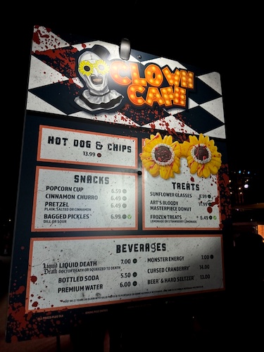 As far as themed restaurant overlays go, you’ll find eateries inspired by the Fallout franchise, Jason, Five Nights at Freddy’s (without working animatronics like they have at Universal Orlando, sadly), Terrifier, Slash (the Guns N’ Roses guitarist who also provides the soundtrack for this year’s Scarecrow house), and Chucky.