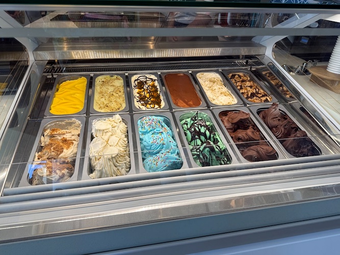 Also beaming with natural light, the counter service location provides Starbucks beverages, gelato, and pastries for guests looking for a quick pick me up before embarking into Epic Universe.