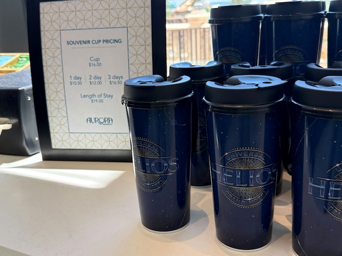 Helios Grand also offers a refillable souvenir coffee cup, perfect for parents trying to keep up with their children on an exciting trip through Epic Universe’s five themed worlds.