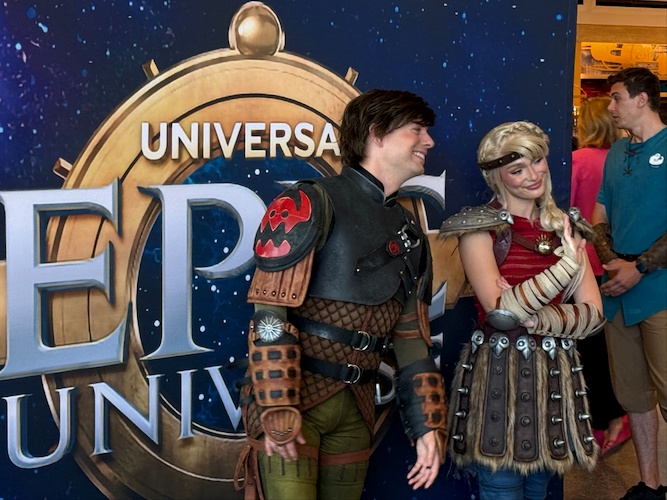 Situated inside the park, guests can expect some of the epic characters of Universal’s Epic Universe to make appearances at the hotel. This includes Isle of Berks’ Hiccup and Astrid, who were seen greeting guests inside the lobby.