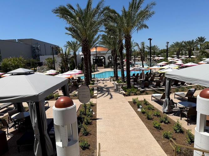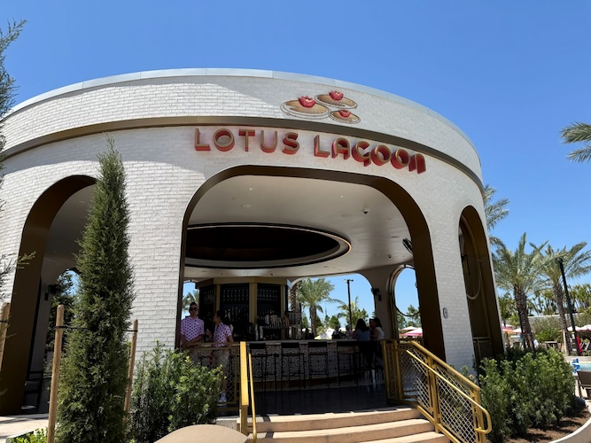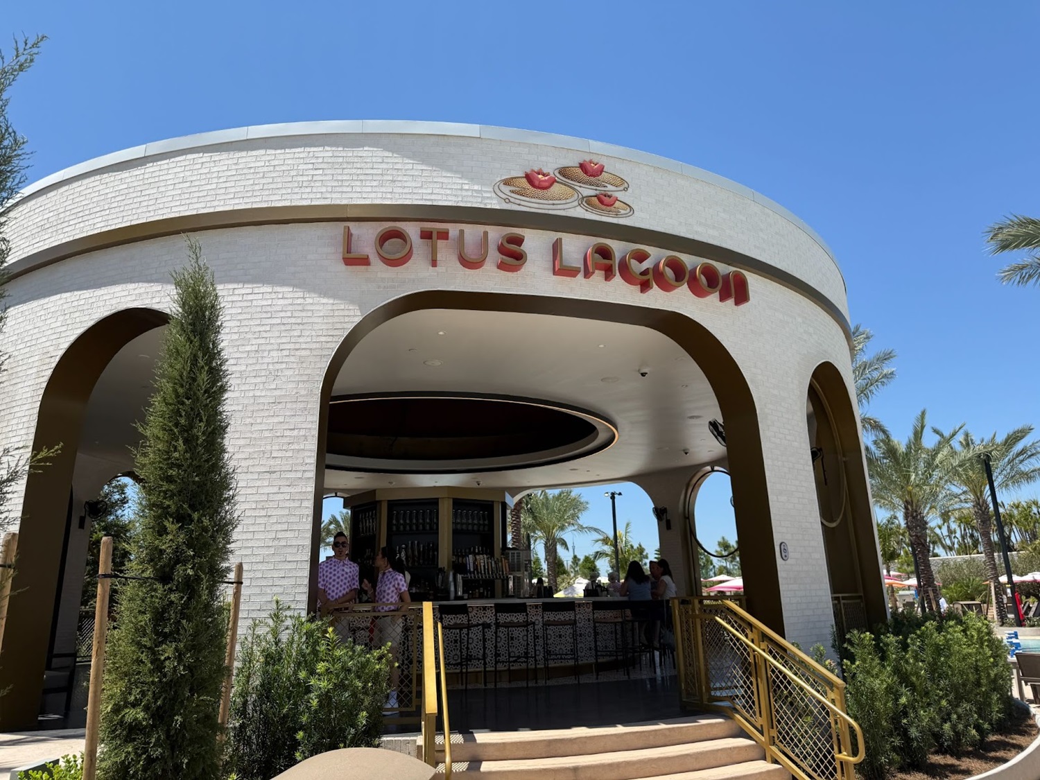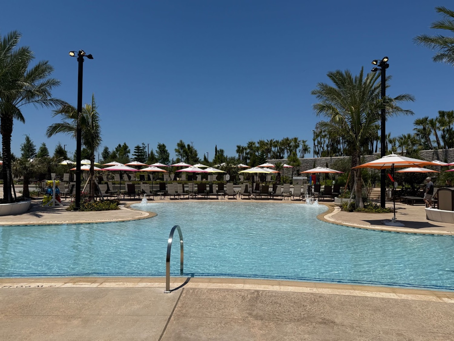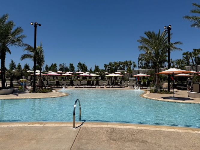 The pool area is absolutely gorgeous, sprawling with palm trees and other greenery. While the area is tightly squeezed between the hotel and Dark Universe, Universal still managed to make the area feel open, clean, and relaxing. Full disclaimer, there was a DJ playing loud pop music during our visit, so if you are looking for more of a pool party, you’ll definitely find that here as well. The area features a zero-entry pool and spa, as well as Lotus Lagoon.