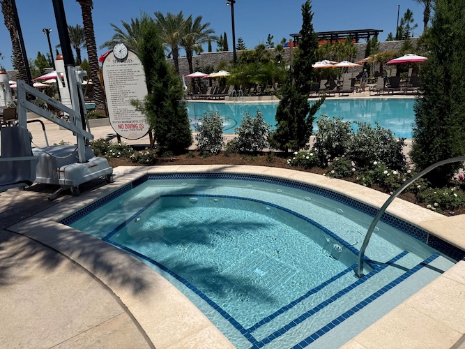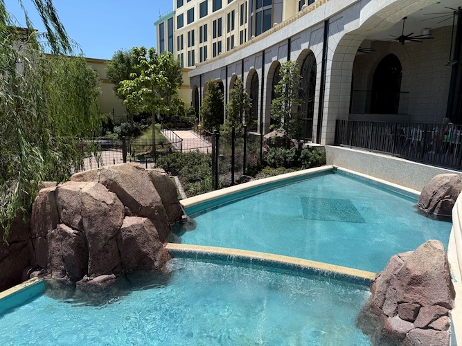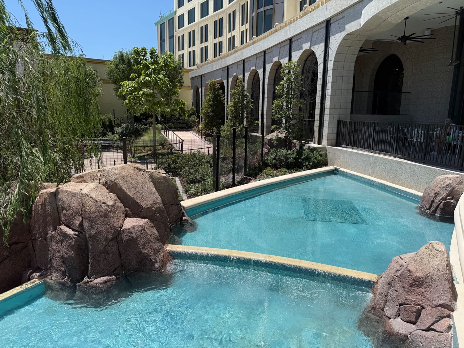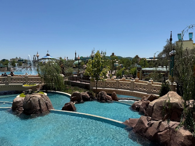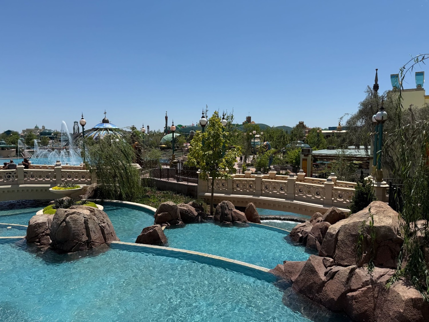 The pool area is absolutely gorgeous, sprawling with palm trees and other greenery. While the area is tightly squeezed between the hotel and Dark Universe, Universal still managed to make the area feel open, clean, and relaxing. Full disclaimer, there was a DJ playing loud pop music during our visit, so if you are looking for more of a pool party, you’ll definitely find that here as well. The area features a zero-entry pool and spa, as well as Lotus Lagoon.