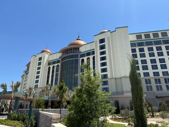 Universal Orlando Resort is gearing up to welcome guests into the unforgettable worlds of Universal’s Epic Universe. As guests enter through the Chronos, they’ll find themselves immersed in the park’s hub, Celestial Park. The area takes inspiration from the Mediterranean while combining it with mythology and astrology to create an unforgettable fantasy world. Towering over Celestial Park, the Helios Grand Hotel serves as Epic Universe’s iconic centerpiece. While the park doesn’t officially open to the public until May 22nd, the Helios Grand Hotel has begun welcoming guests, offering a preview of the epic adventures families will embark on in just over a month. The hotel, which was developed by Universal Creative and co-owned with Loews Hotels, extends the futuristic, yet classic theming of Celestial Park to create an immersive and luxurious vacation experience.