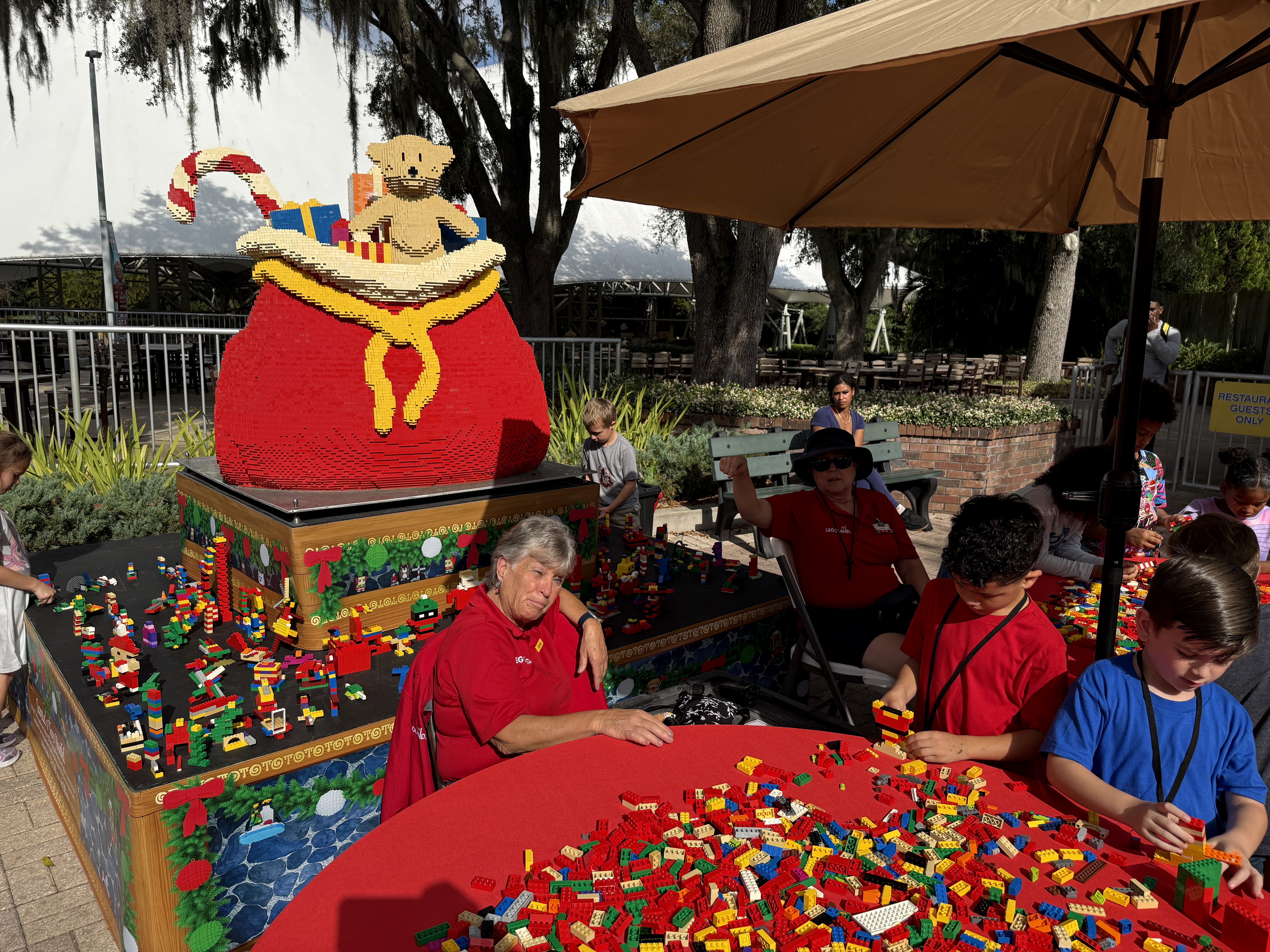 LEGO figures of holiday stalwarts like Santa Claus, elves, and much more can be found throughout the park.