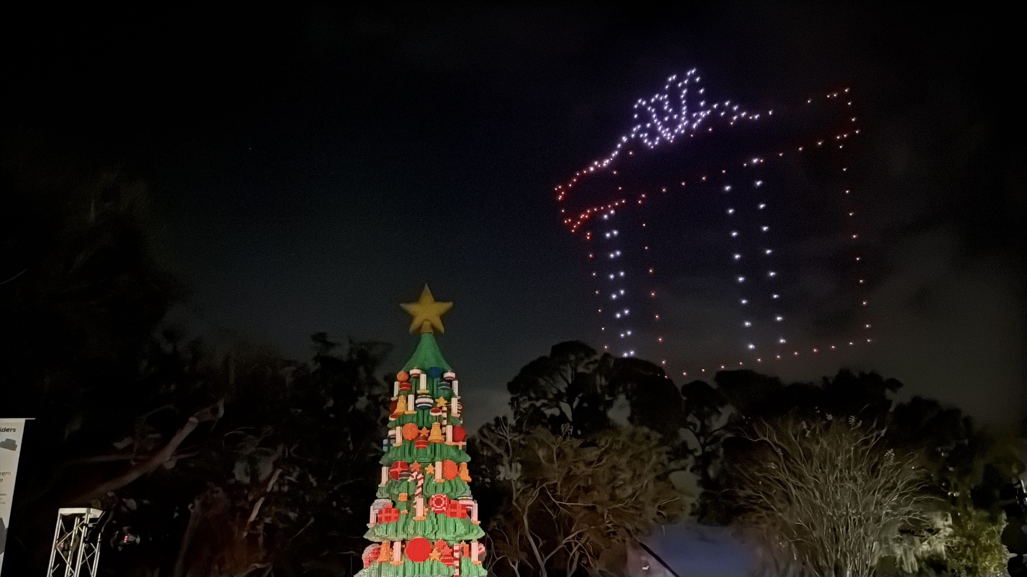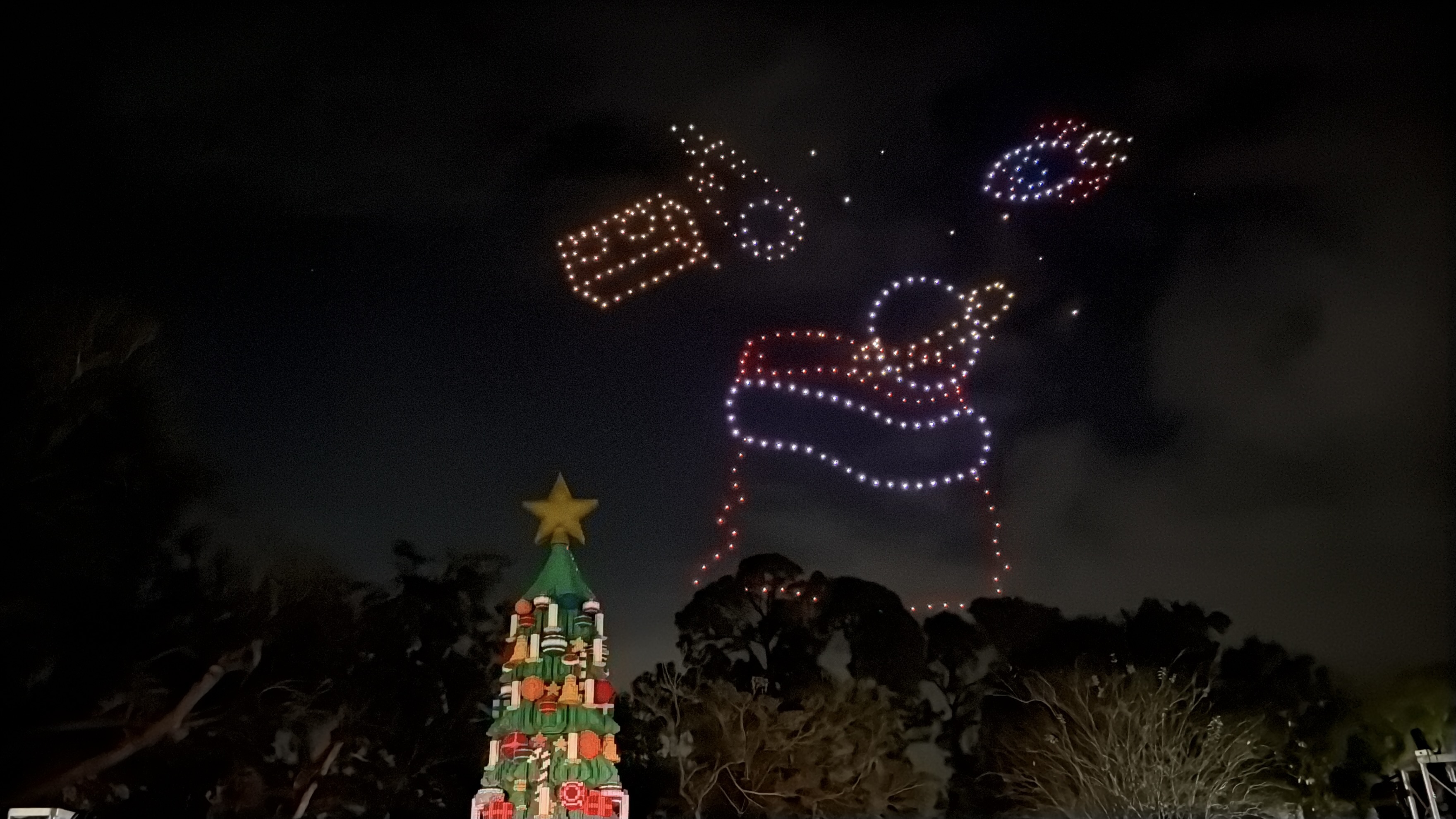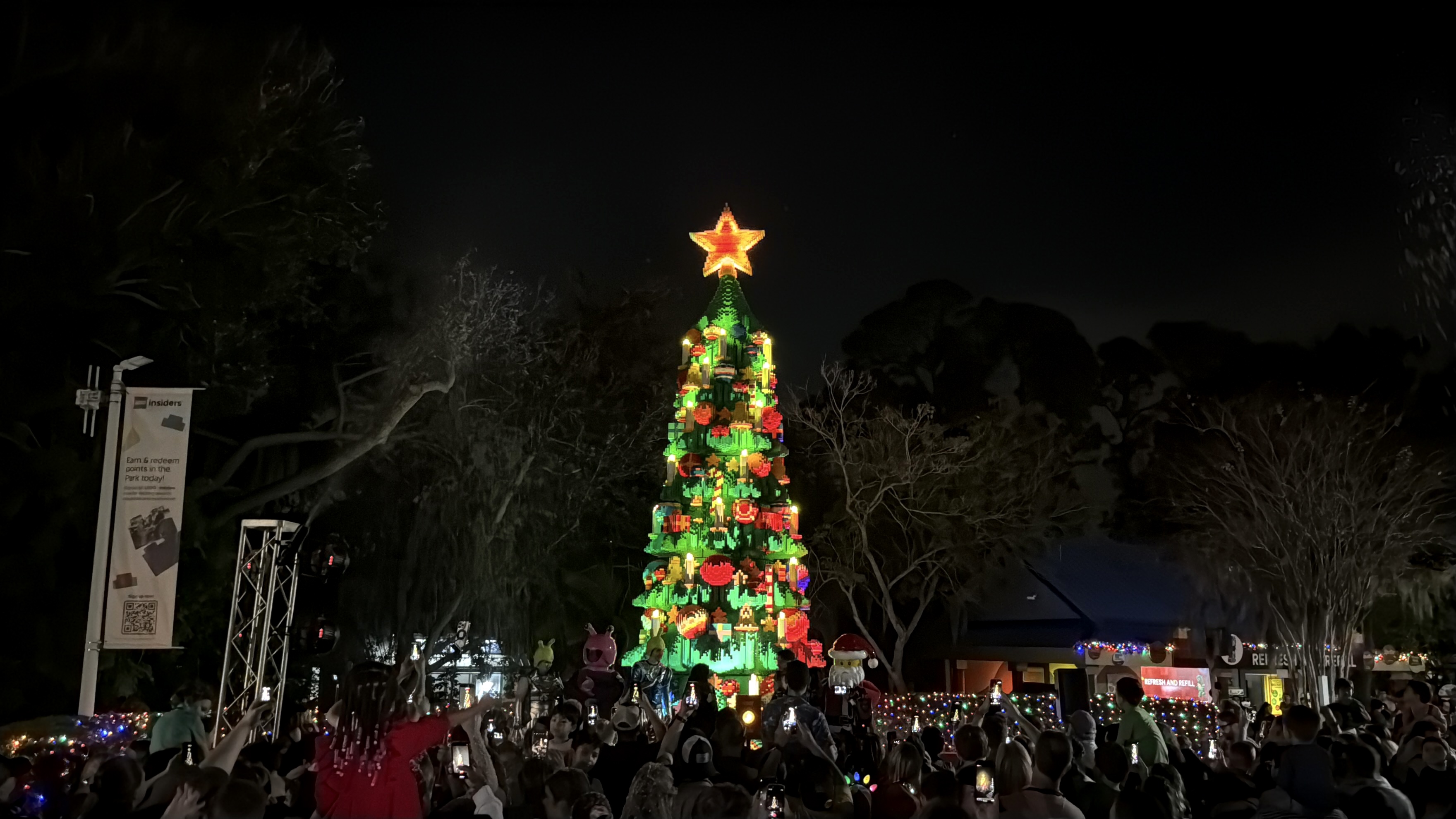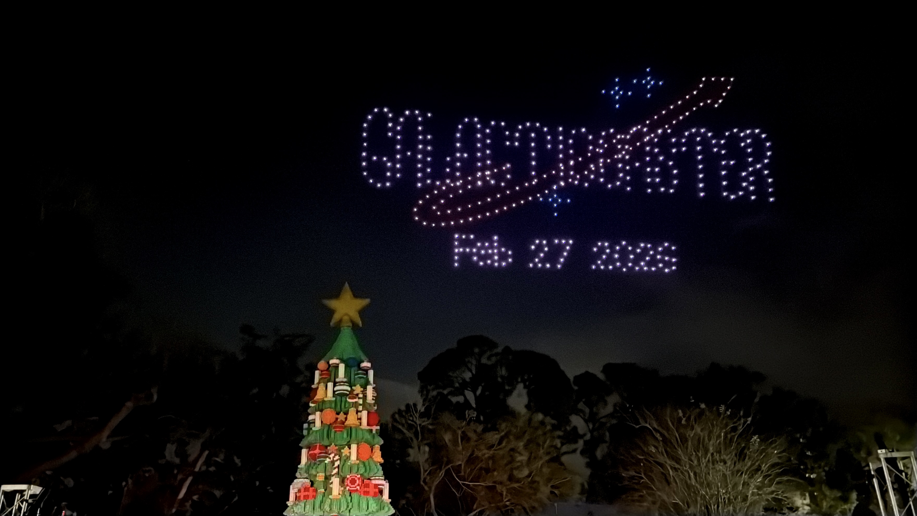 As night falls, the brand-new LEGO Christmas tree introduced last night was lit up for the season, with the assistance of drones! These drones also revealed that LEGOLAND Florida's new roller coaster, Galacticoaster, will officially open on February 27th, 2026.