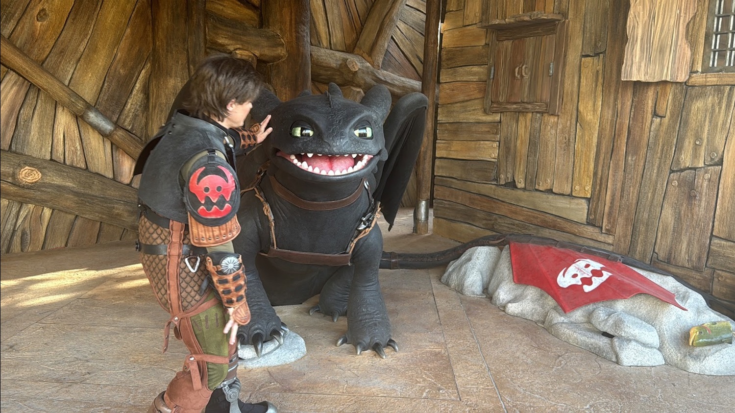 Guests can visit the Haddock Paddock for an incredible meet-and-greet experience with heroic Dragon Rider, Hiccup, and pose for a photo with his friendly Night Fury, Toothless.