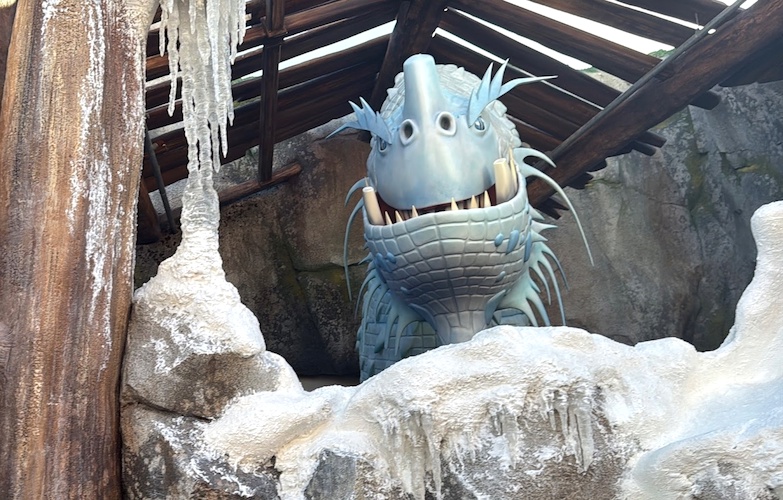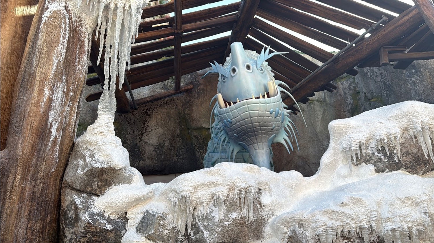 This ice dragon located near The Untrainable Dragon theater even breathes out ice from its mouth!
