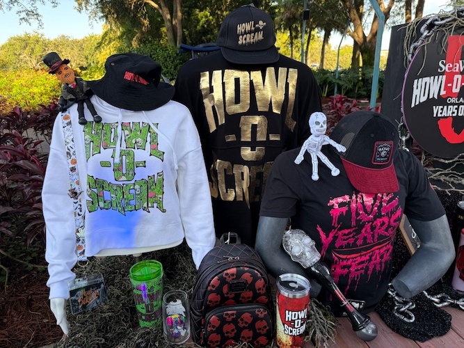Plenty of Howl-O-Scream event merchandise will be available this year, letting you dress your macabre best. Pins, shirts and more celebrate five years of fear.