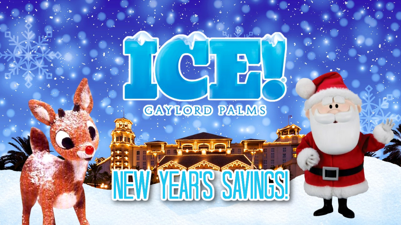 - Continuing through January 7th, 2026, ICE! at Gaylord Palms features more than a dozen larger-than-life scenes from the classic 1964 stop-motion television special, Rudolph the Red-Nosed Reindeer, including Rudolph, Hermey the Elf, Yukon Cornelius, Bumble, Clarice, and Santa Claus.
