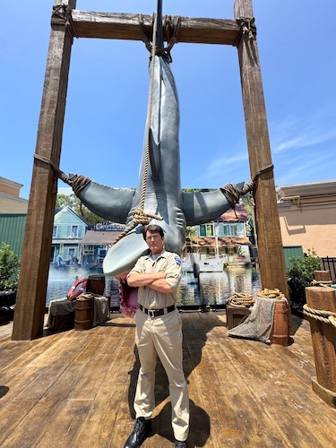 You’ll find them meeting in front of the iconic hanging shark, which has been missing from the park for a number of years.