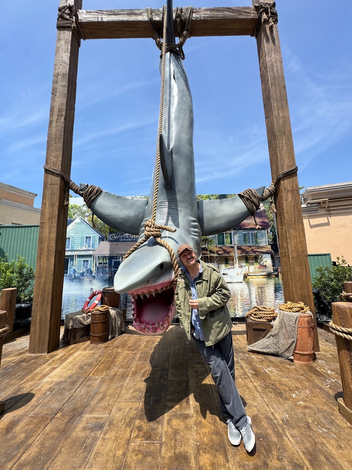 You’ll find them meeting in front of the iconic hanging shark, which has been missing from the park for a number of years.
