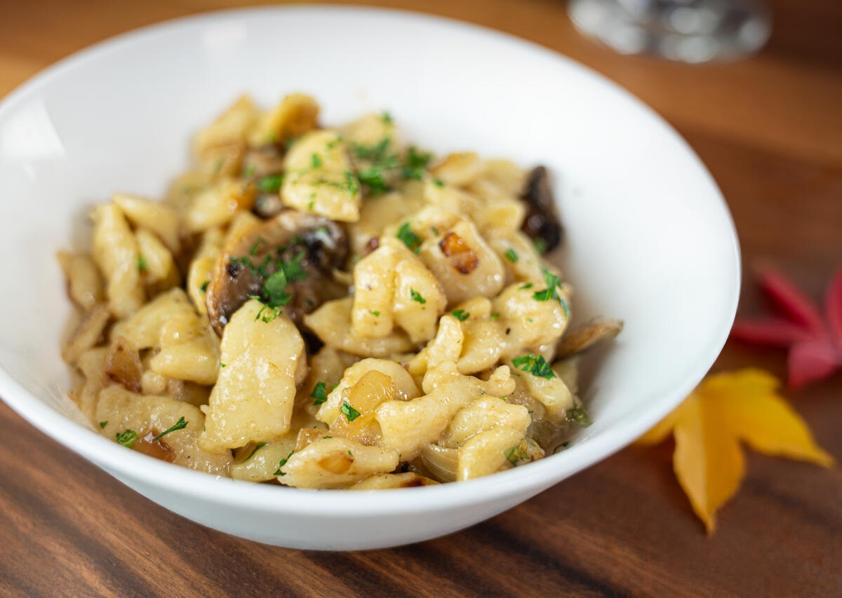 Spaetzle with Mushrooms in Brown Butter Sauce