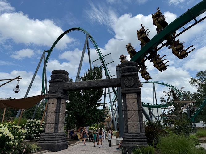The park’s newest coaster, which opened this year, is also one of its best – if you sit in certain seats. Rapterra opened earlier this year, serving as the replacement for the park’s beloved former Volcano: The Blast Coaster. This B&M wing coaster is one of only two in the United States to feature a launch, and that is truly a fun experience in these wing-style seats. Unfortunately, depending where you sit, this can be a REALLY bumpy ride. In the front row, I had a smooth and incredible experience. But in the back row, the seat bounced all the way down the launch and at many moments during the ride – something that should not be happening with such a new coaster. If the park and B&M can somehow fix these issues, then Rapterra might have a case as the best ride in the park. What it really does have going for it is the theming, which includes a massive temple-like structure and dig-site theming in the station. As with everything else in Jungle X-Pedition, it’s really well done.
