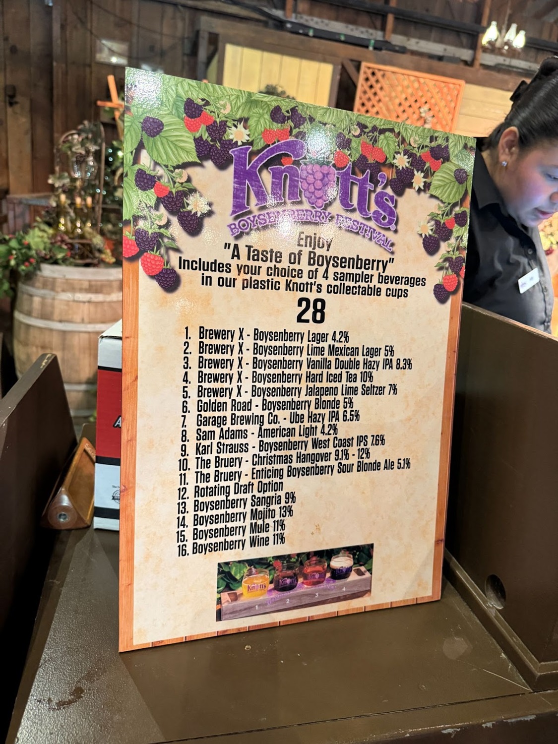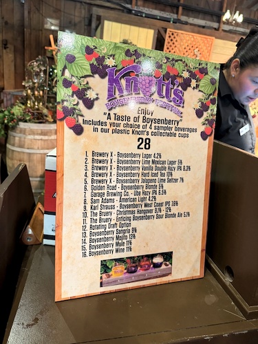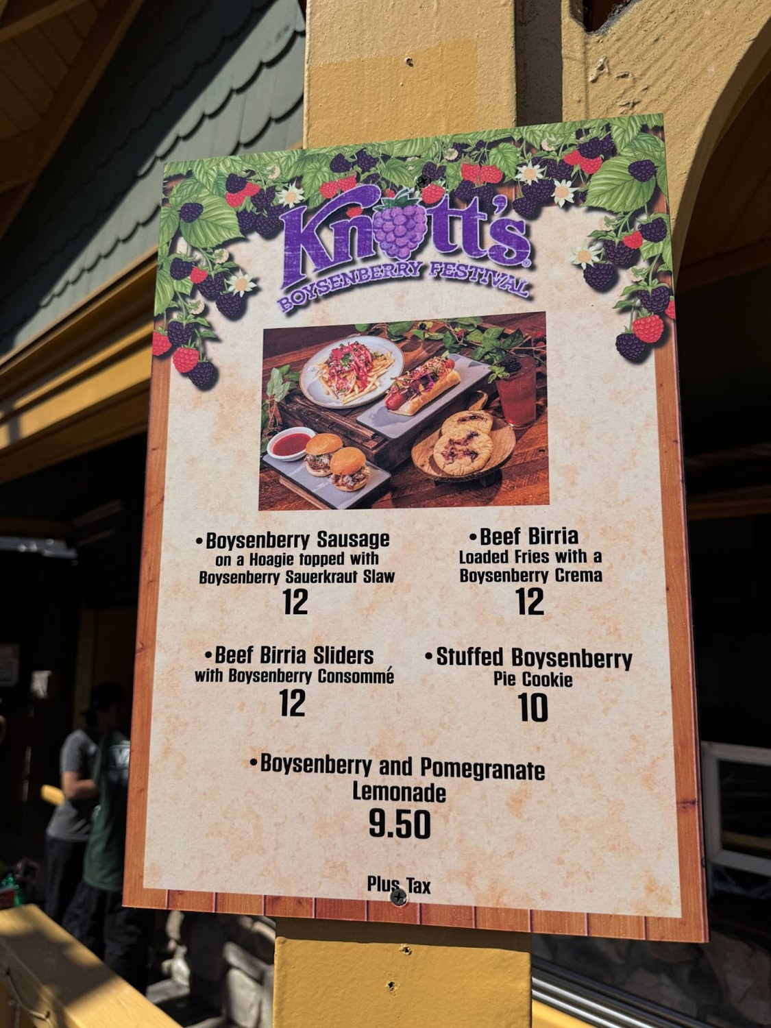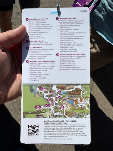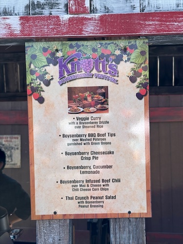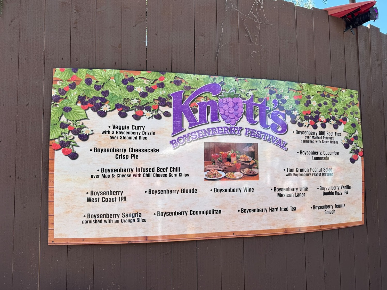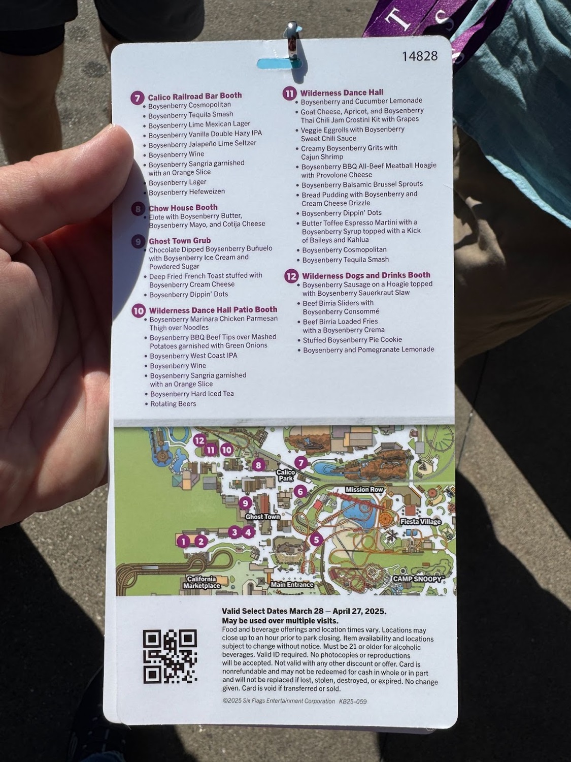 Here’s a look at this year’s Knott’s Boysenberry Festival tasting card, which Knott’s Berry Farm was kind enough to provide us with so we could try out some of the food and report back to our audience about what we thought.