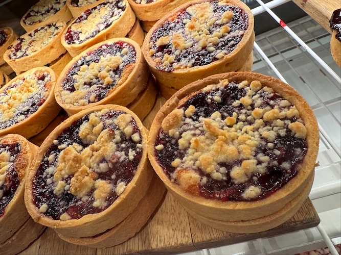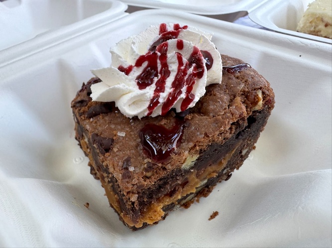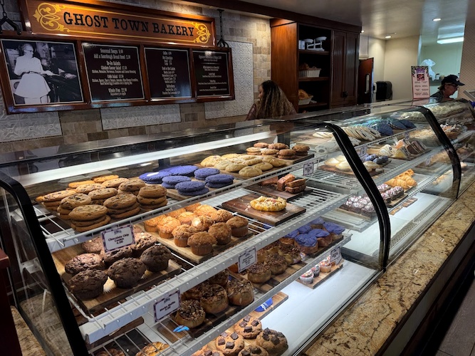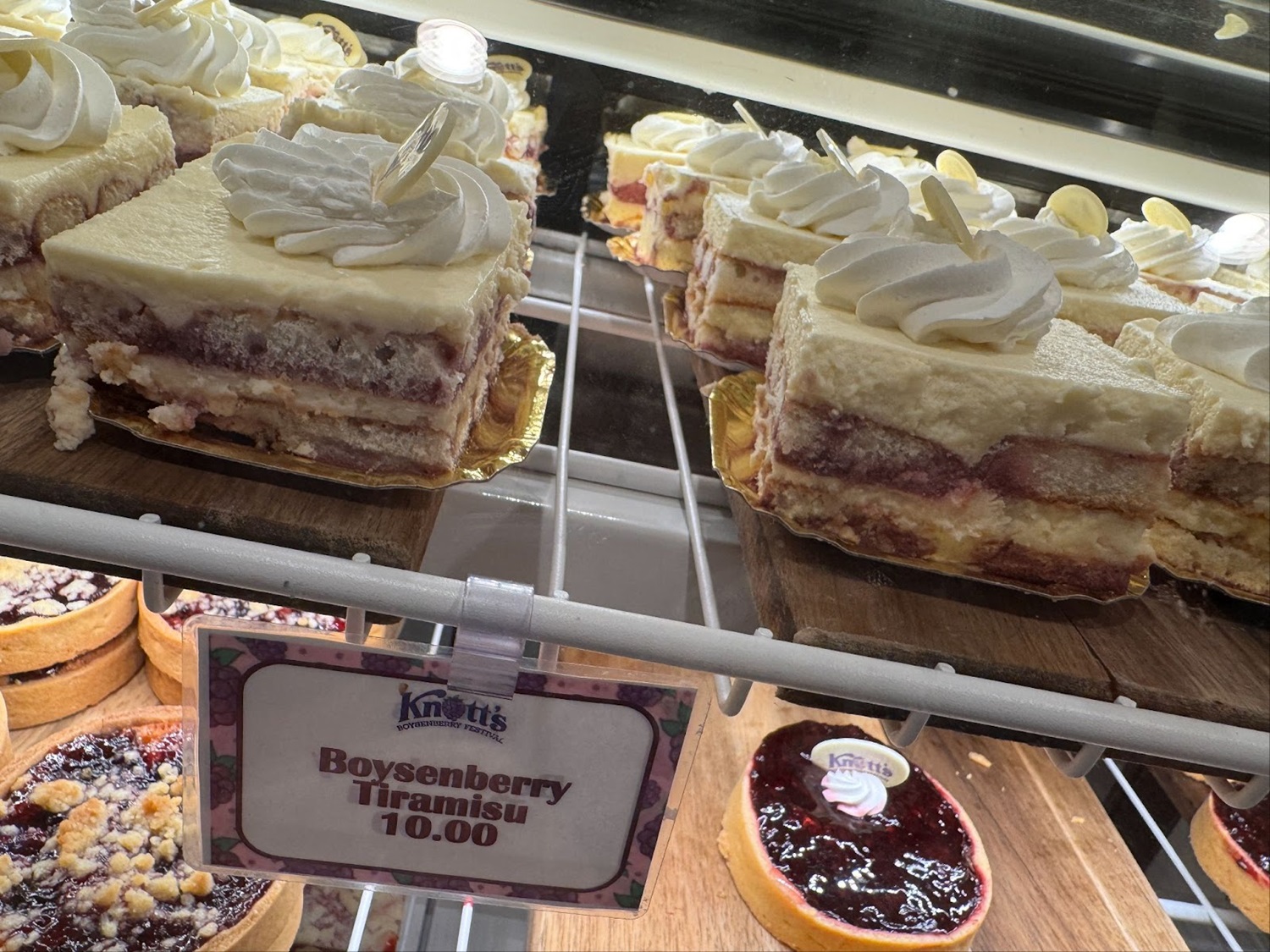 Our first stop, food-wise, was the Ghost Town Bakery. Here we ordered the Belgian Waffle with Boysenberry Butter and Boysenberry Maple Syrup (“It has a nice crunch. Good texture, maybe too much butter. Definitely recommend, but not for those expecting a fluffy waffle."), the Boysenberry Tiramisu (“It’s a little bland. It doesn’t really taste like anything."), and the Salted Caramel Brownie with Whipped Cream and Boysenberry Drizzle (““It’s the opposite— too much of everything.") It was also nice to get a look at some of the other desserts available at the bakery while we were there.