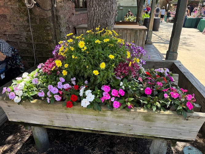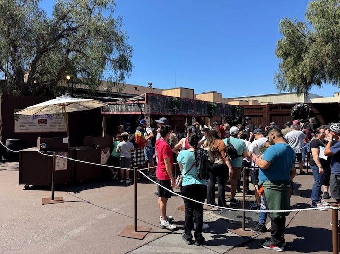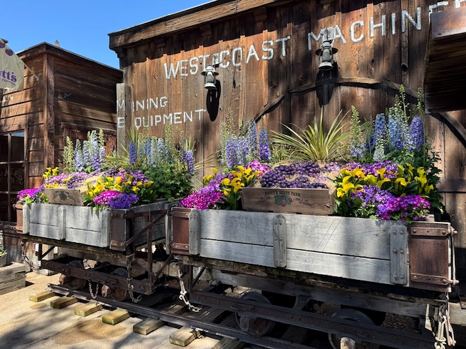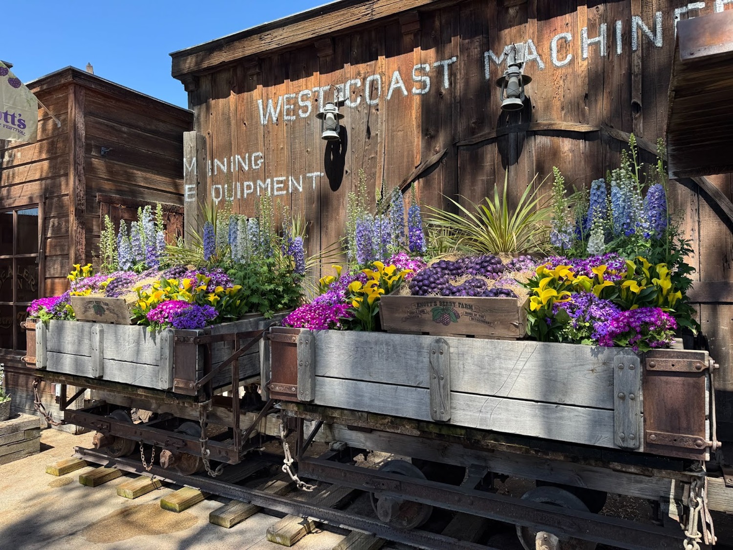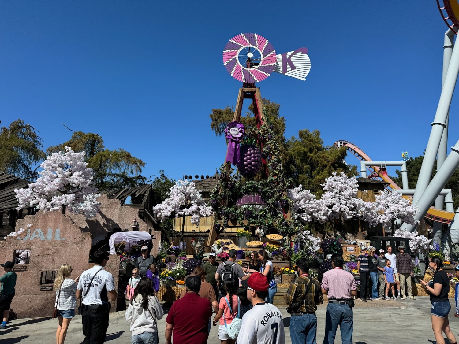 Rewinding time to earlier in the day, we arrived at Knott’s Berry Farm to find its familiar entrance area beautifully decked out in cherry blossoms for the seasonal event.