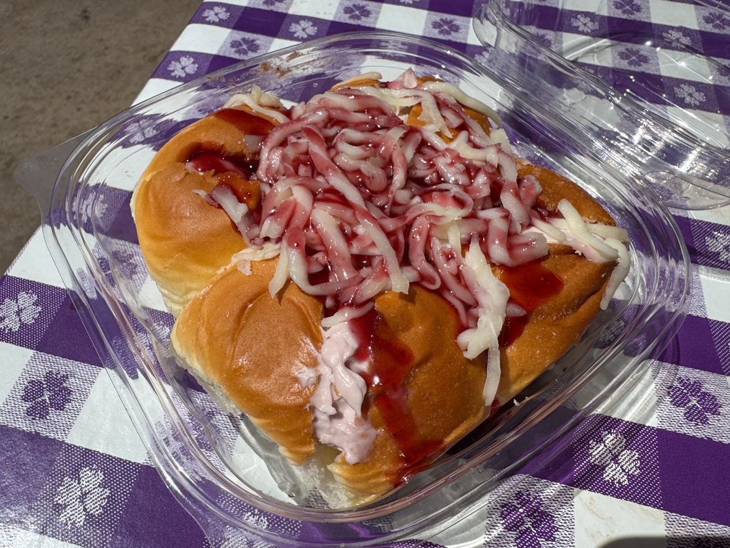 At the Gold Mine Trail booth, we got the BBQ Beef Tips (“Highly recommended. The meat is well cooked and I like the sauce.") along with the Boysenberry and Cucumber Lemonade (“Really good too and came with an actual intact boysenberry.")