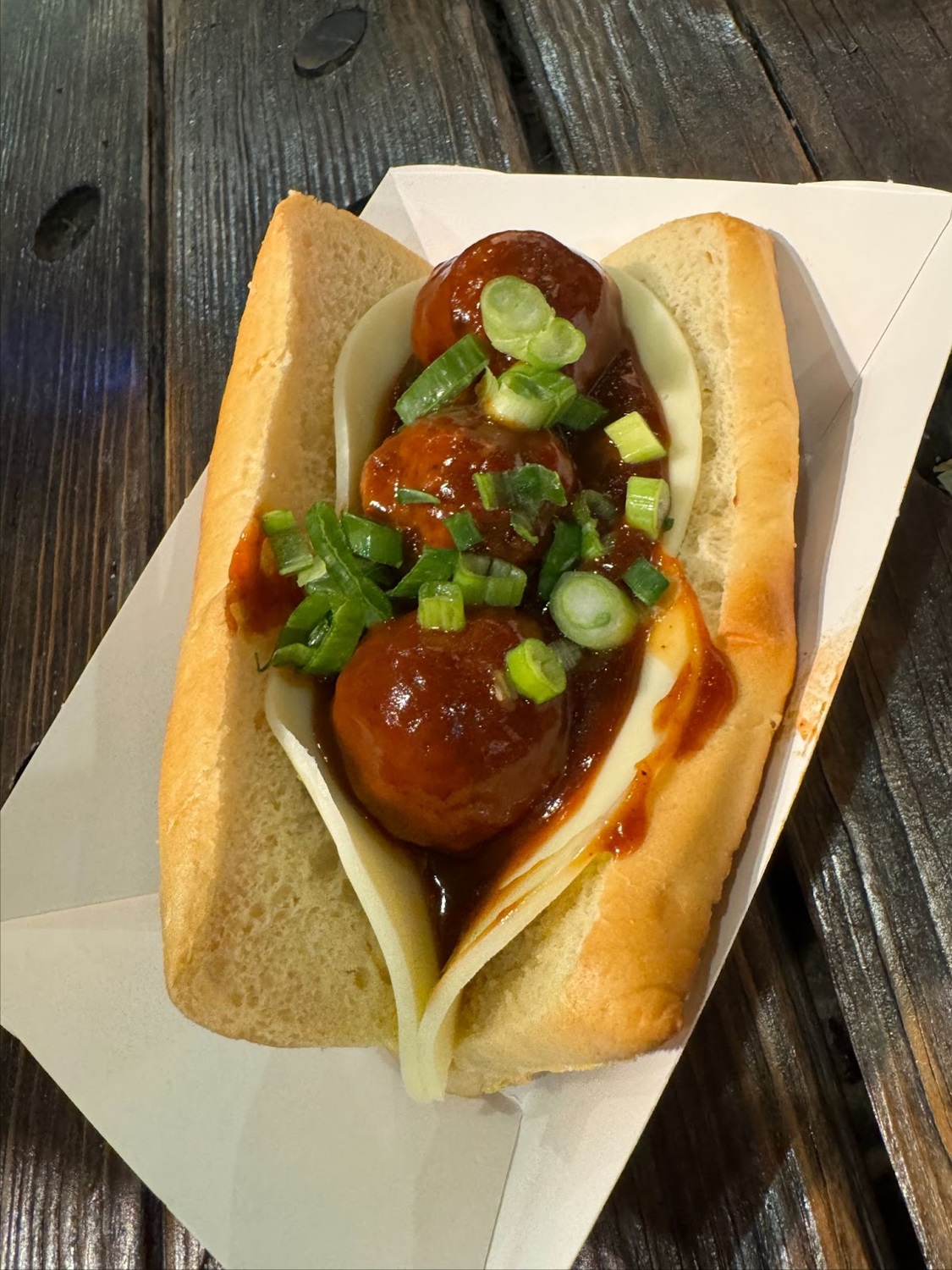 At the Wilderness Dance Hall, we ordered the Boysenberry West Coast IPA, the Butter Toffee Espresso Martini with Boysenberry Syrup, and the BBQ All Beef Meatball Hoagie (“Delightful. Very good. I wasn’t sure about the boysenberry combined with provolone cheese, but it works.")