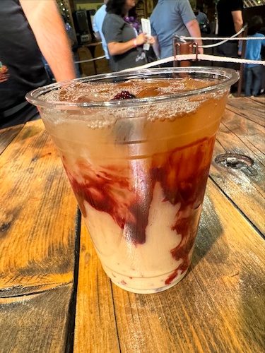 At the Wilderness Dogs and Drinks booth, we got the Beef Birria Loaded Fries with Boysenberry Crema, which comes with a big portion! (“Good bang for your buck. The birria is a little dry. Not bad, but not amazing.") I also tried the Boysenberry Pomegranate Lemonade (“Still really good but I don’t like mint and generally I found the cucumber one from earlier a bit more refreshing.")