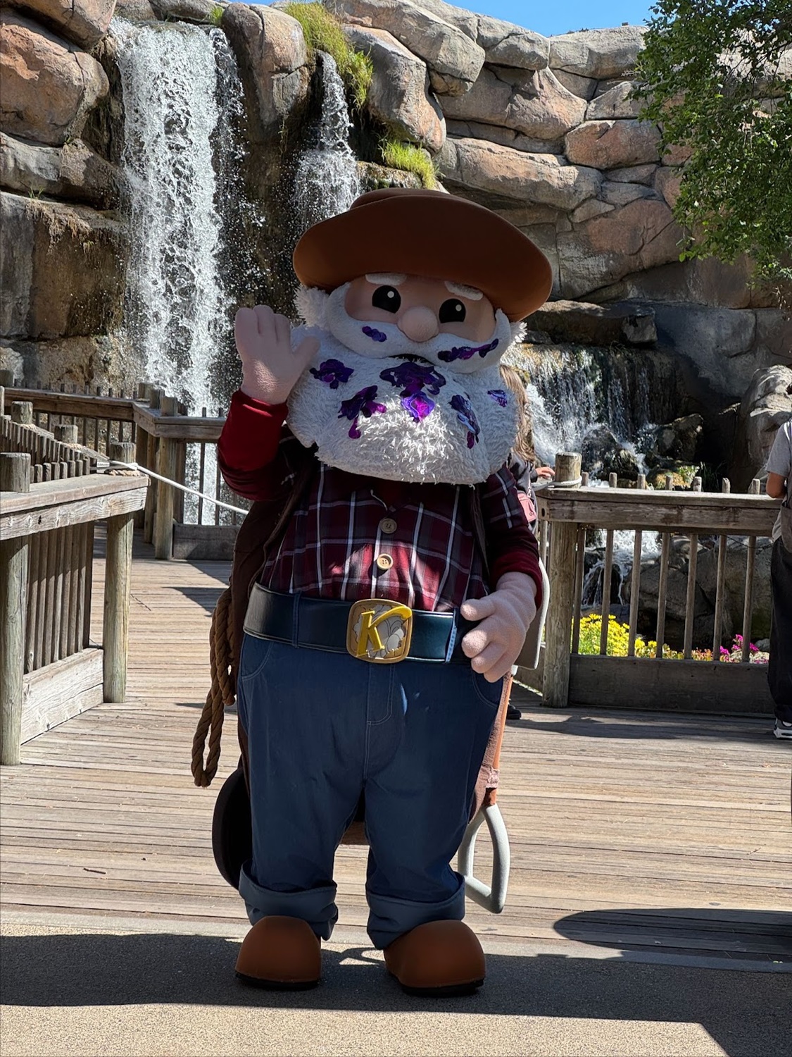 We found Boysen Bear in Calico Town Square, where kids’ games are played throughout the day, and we also spotted Whittles the prospector near the Calico River Rapids.