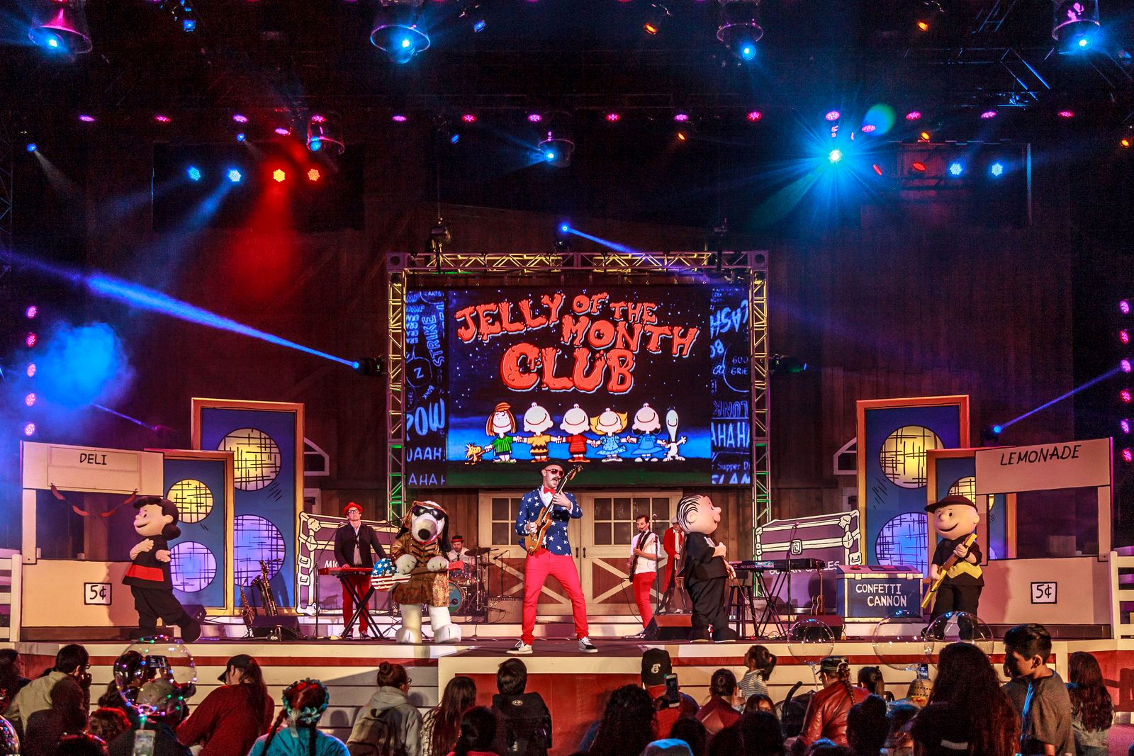 - On the Calico Mine Stage, the daytime show Let’s Celebrate delivers a heartwarming musical tribute featuring Snoopy, Charlie Brown, and the full PEANUTS ensemble, alongside talented singers and dancers. As night falls, the stage transforms for Snoopy’s Legendary Rooftop Concert, where the PEANUTS gang teams up with indie band The Jelly of the Month Club for a high-energy performance designed to get the whole park dancing.