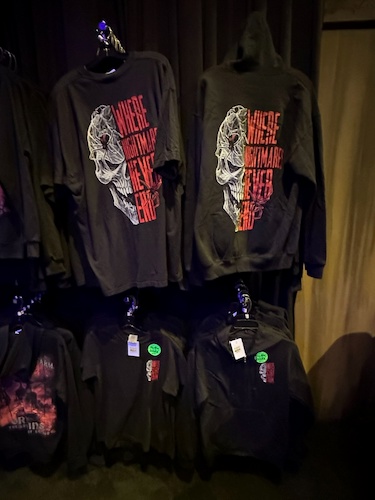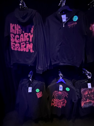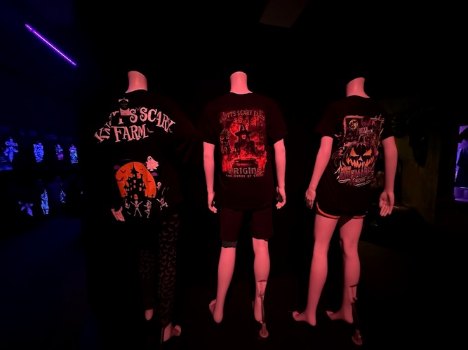 You’ll find plenty of Knott’s Scary Farm apparel here and at other locations throughout the park, including shirts for this year’s new mazes.