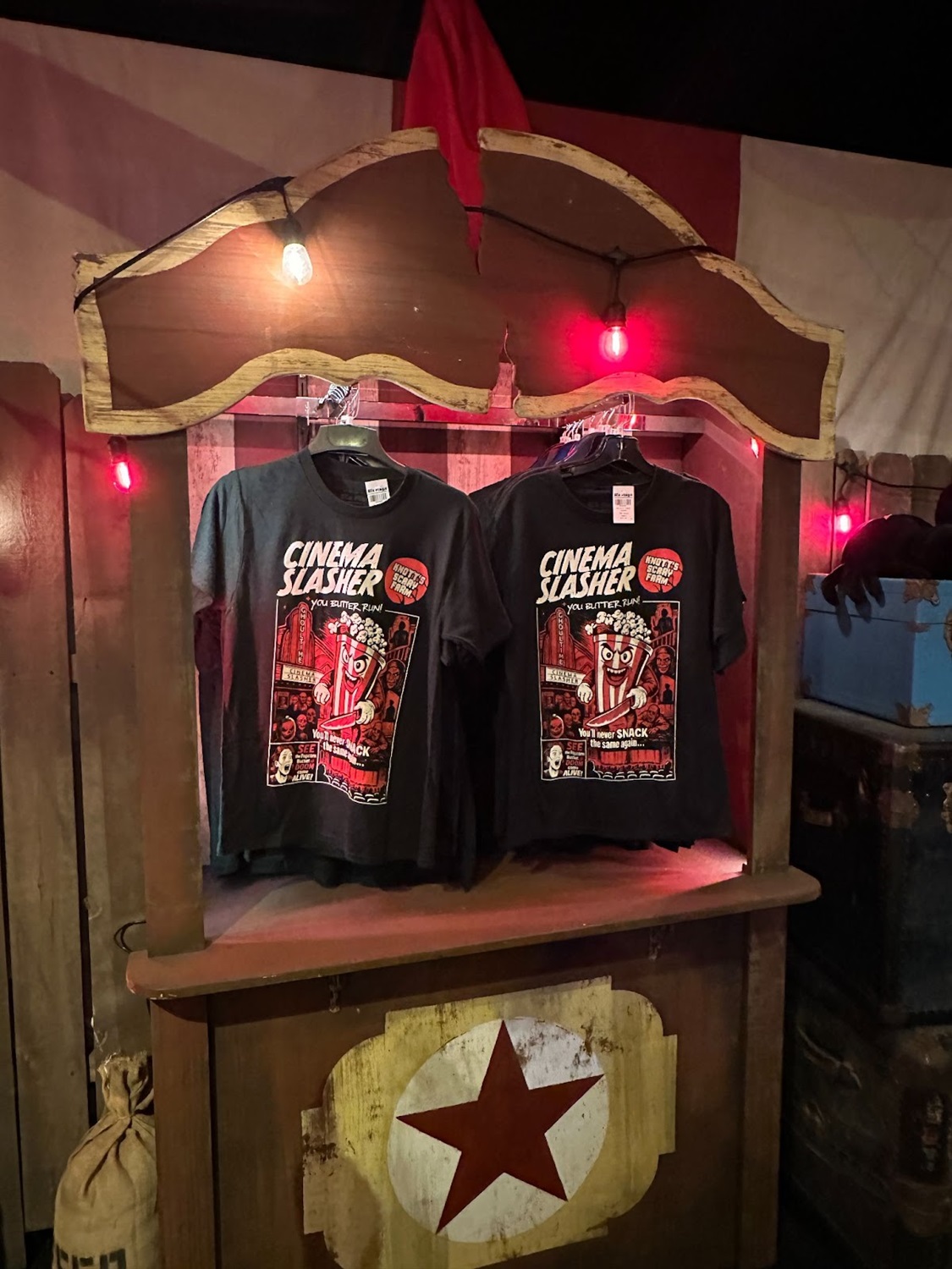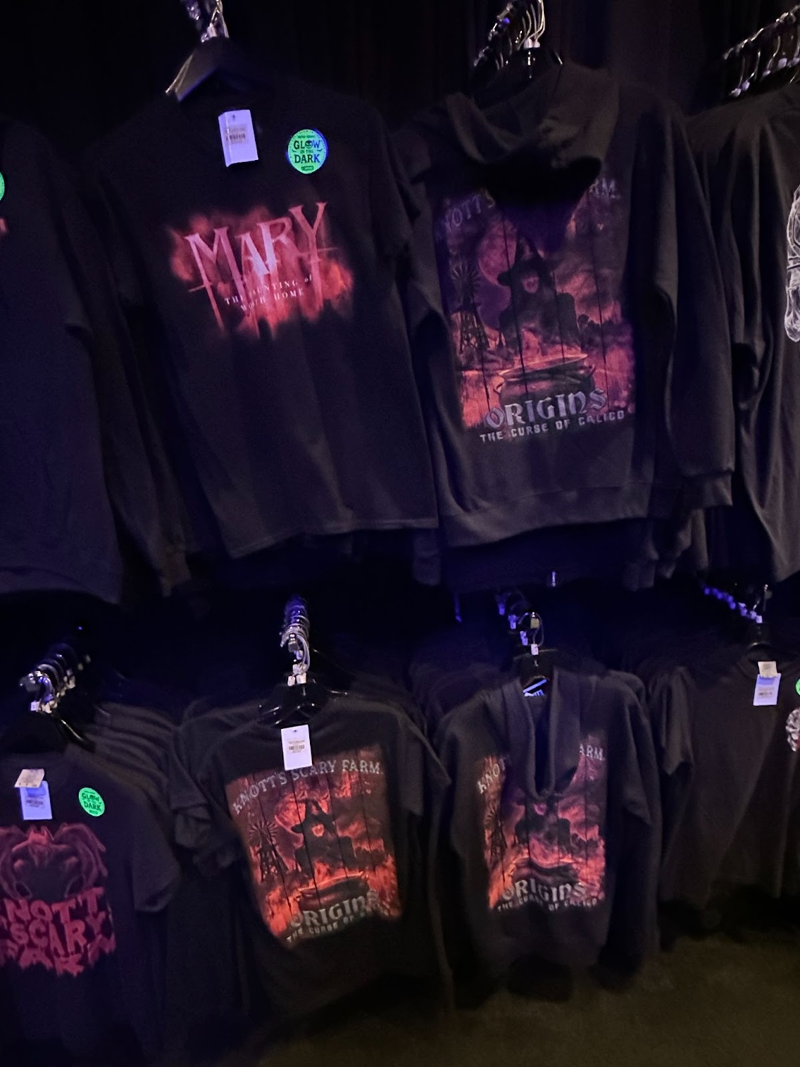 You’ll find plenty of Knott’s Scary Farm apparel here and at other locations throughout the park, including shirts for this year’s new mazes.