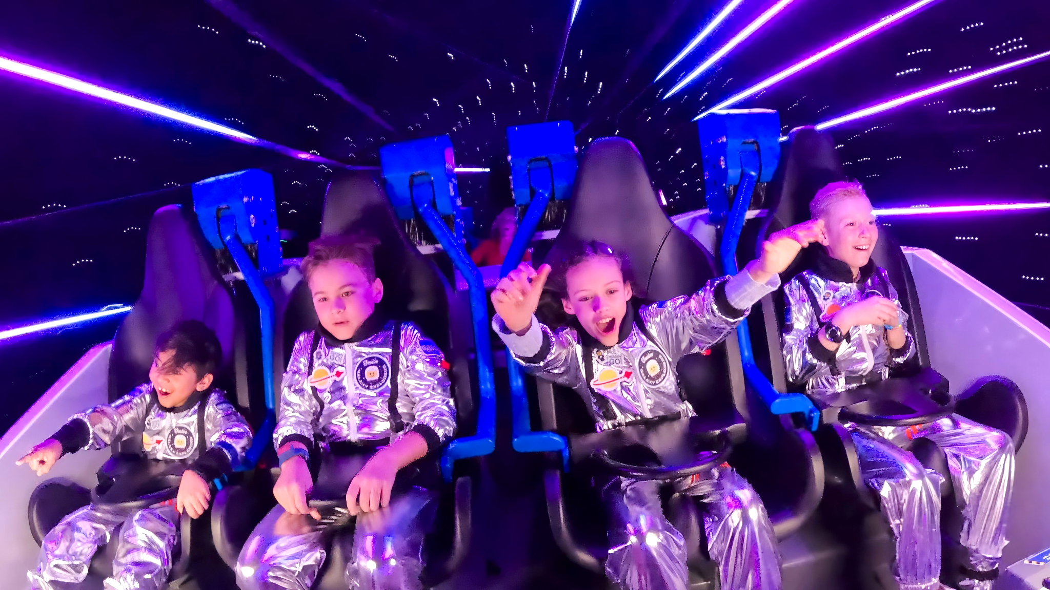 - The pair also took a trip to outer space aboard the new roller coaster.