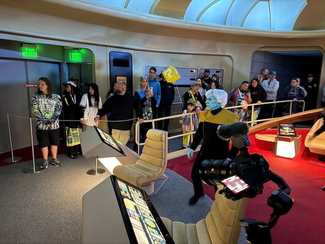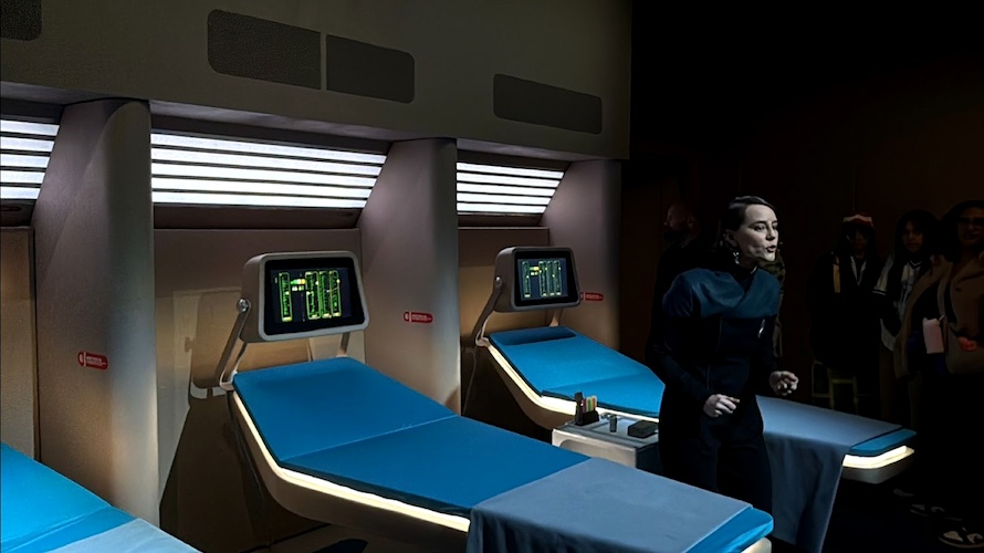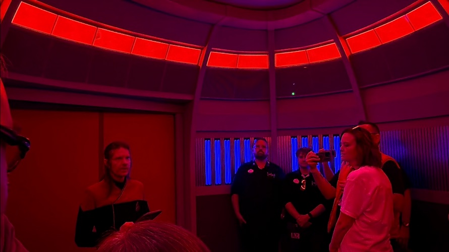 Entering into the queue, guests are immediately immersed with the sights and sounds of Star Trek. Before entering into the walkthrough experience, guests are welcomed in with a preshow video welcoming them to their mission.