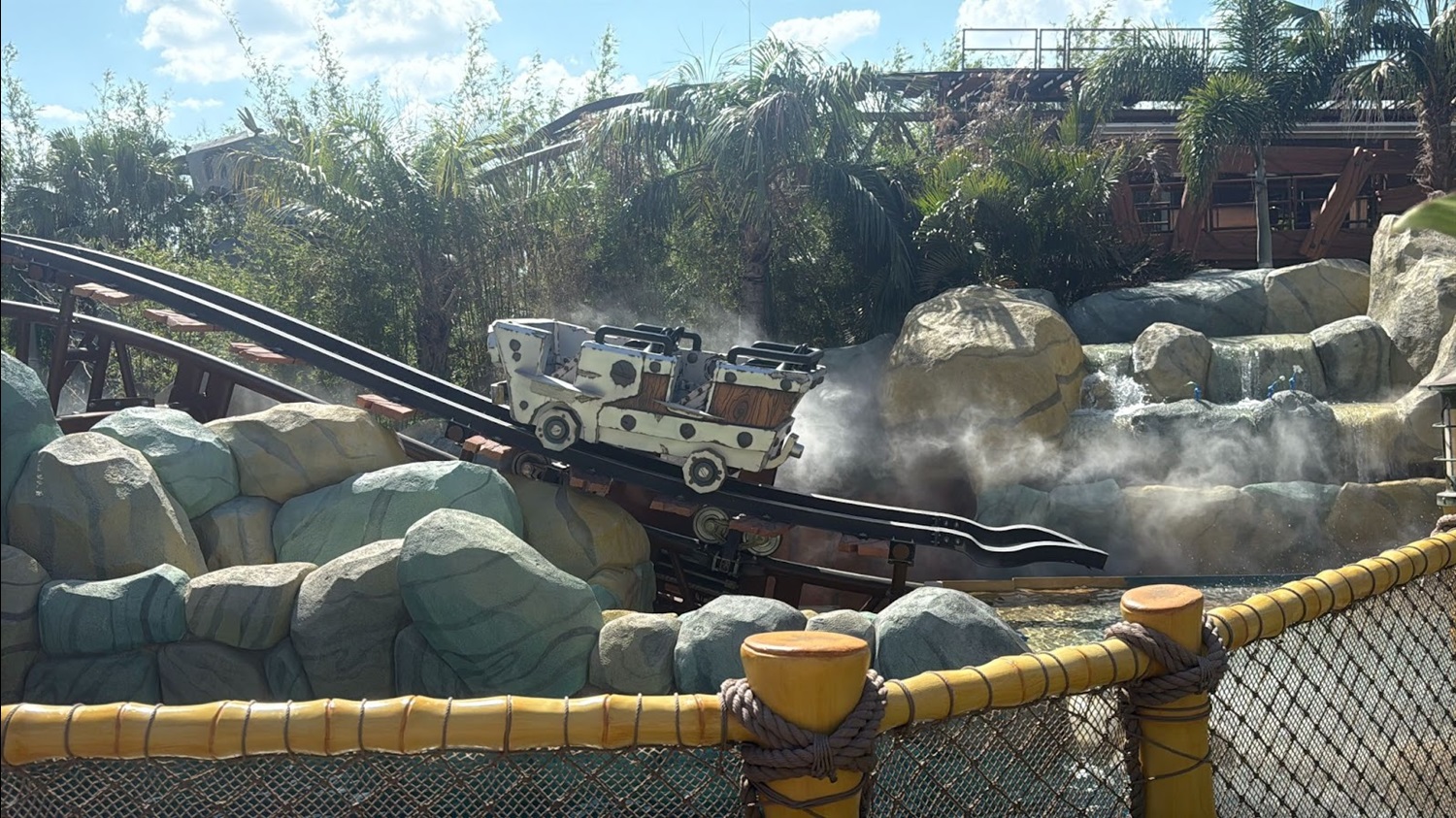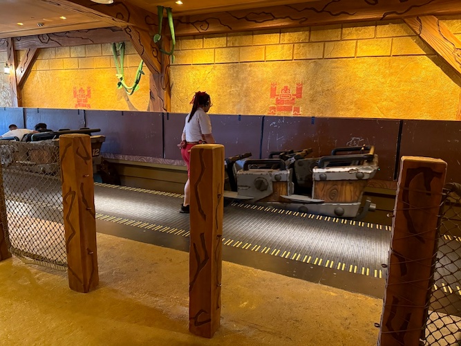 Like in the video games, the attraction found in Donkey Kong Country is Mine Cart Madness, where riders help Donkey and Diddy Kong protect the Golden Banana.