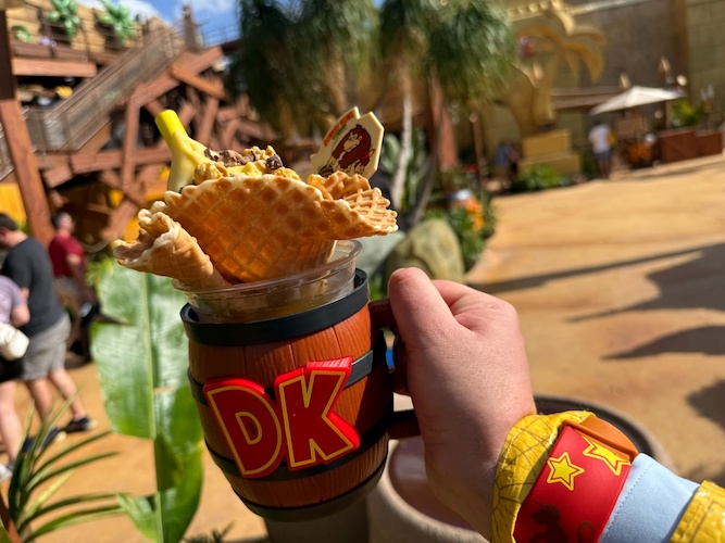 If you’re hungry, Donkey Kong Country offers lots of banana-themed treats, including the DK Crush Sundae with souvenir mug.
