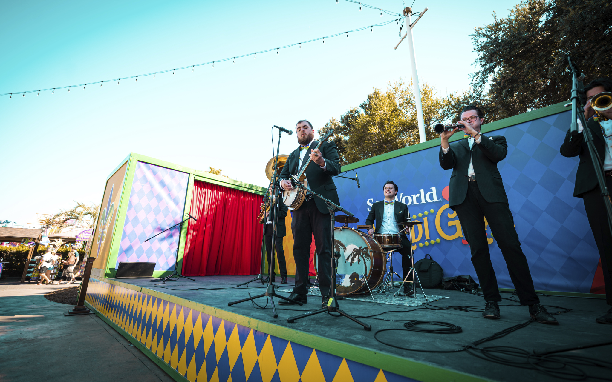 - Mardi Gras Performers & Activities – Visit the SkyTower stage area to see SeaWorld performers in festive costumes and enjoy family-friendly activities throughout the day.