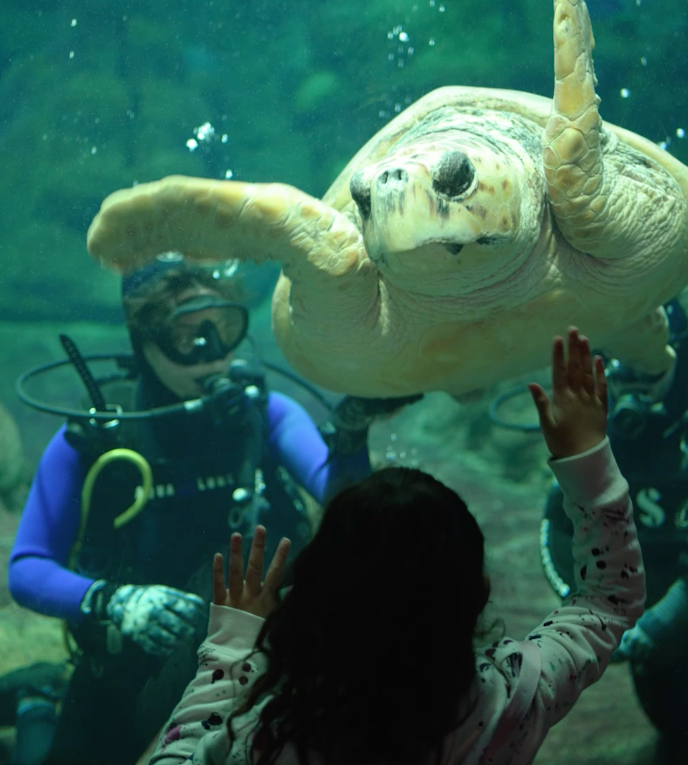 - Guests can also enjoy Inside Turtle Reef, where zoological scuba divers interact with turtles while educators engage visitors with fun facts, games, and Q&A sessions.