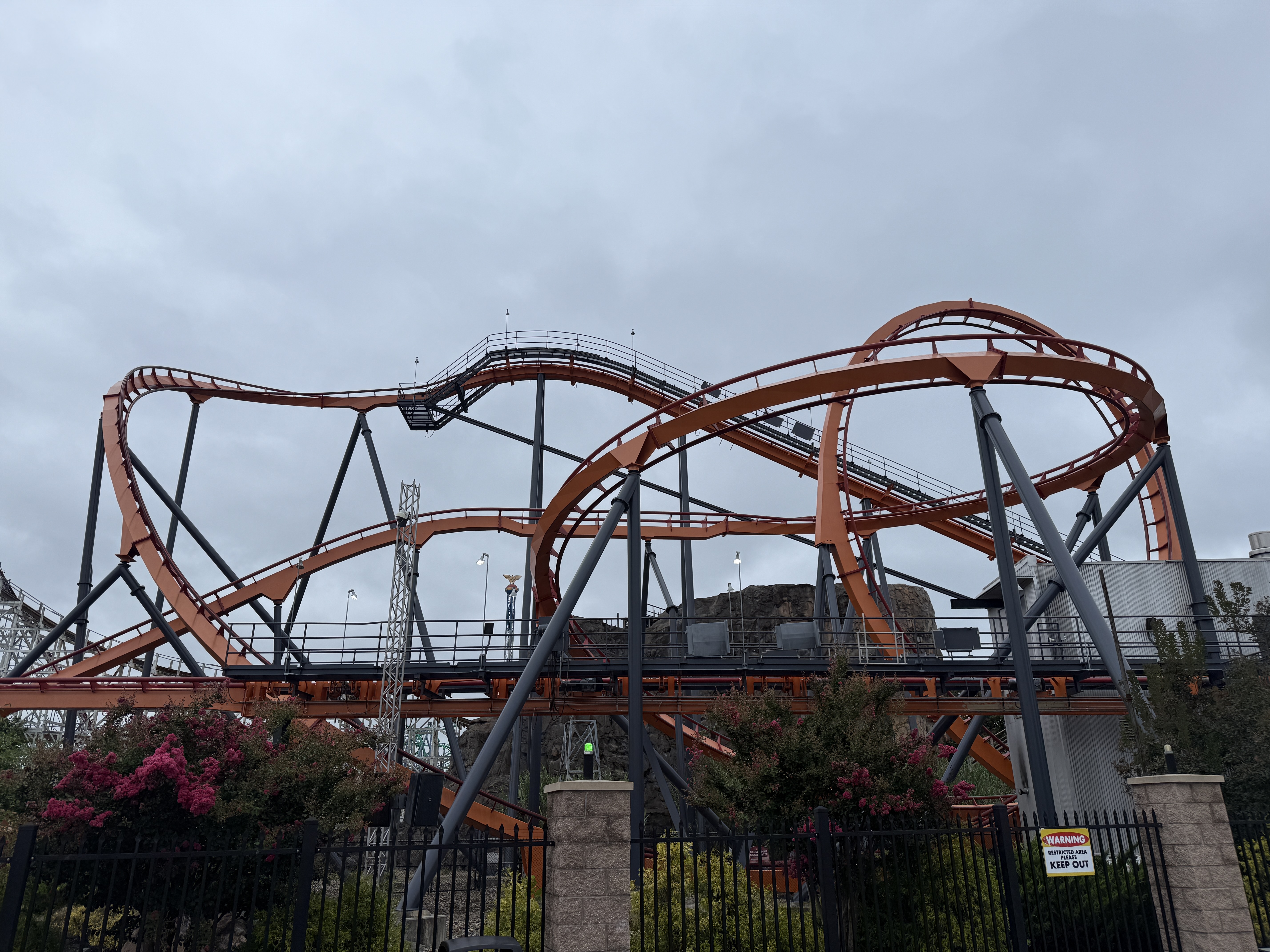 The Joker's Jinx is a clone of a launch coaster that I've previously experienced at Six Flags Fiesta Texas – Poltergeist. That version of the attraction was extra impressive, thanks to a wonderfully haunted themed queue. There's not as much theming here, more so just over-the-top Joker lettering. Fortunately, it's still an excellent coaster. Think of it as Rock ‘n Roller Coaster at Disney’s Hollywood Studios, but outside, much smoother, a little more intense, and only a lap bar.