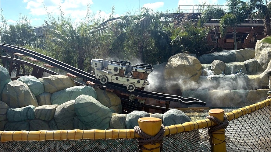 Donkey Kong Country is a whole vibe, from the music to the chill atmosphere (so long as you don’t mind the color yellow!). Mine-Cart Madness takes that exact vibe and ratchets up the shenanigans. Guests along for the ride are charged with protecting Donkey Kong’s Golden Banana from the pesky Tiki Tak Tribe. This specialty coaster’s “gimmick" is to simulate the feeling of jumping sections of broken rail while speeding along in a runaway cart. The effect is a blast, even though we all knew it was coming. A couple minor notes: The ride is a bit rough, and not because of the rail jumping. It just has some rough turns. Also, despite the fact that a large portion of the ride is indoors as a dark ride, the overall attraction length is short. Despite the rough ride and short length, Mine-Cart Madness is still a blast. The animatronic characters both in the queue and on the ride are bright and fun.