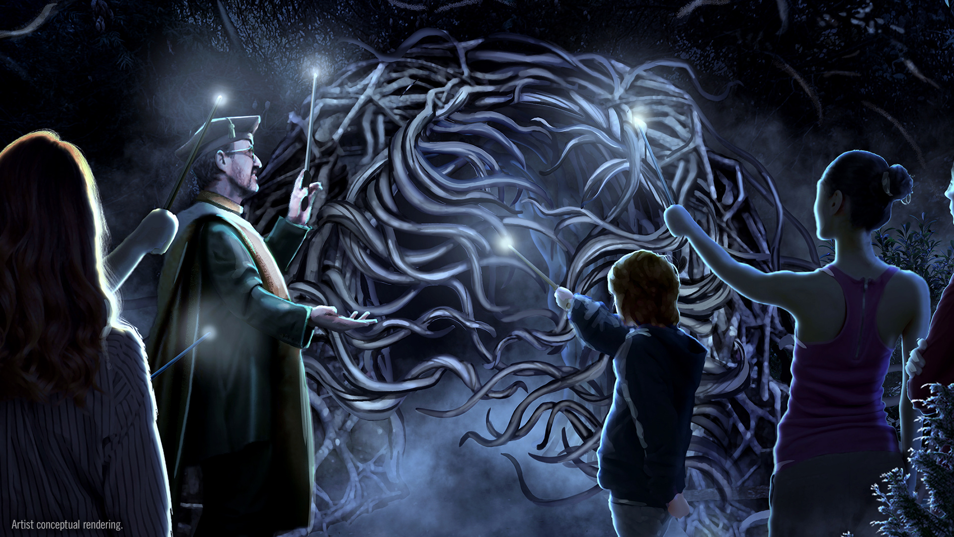 - Guests will be guided through the forest in groups, with a Hogwarts professor at the lead. They'll begin by winding their way through the forest under the premise of meeting a professor for a nighttime lesson. But when the guests find them, everything changes.
