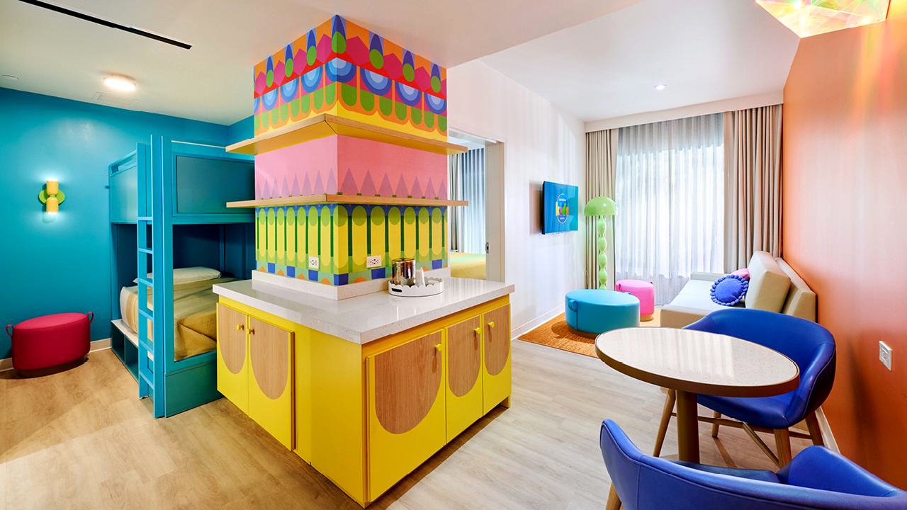 - Family suites will offer a king bed in a separate bedroom, a queen pullout sofa and a twin-over-twin bunk bed along with an eating area.
