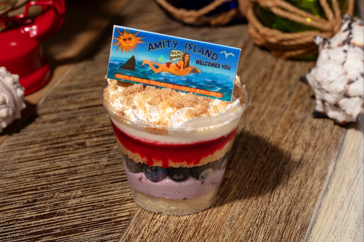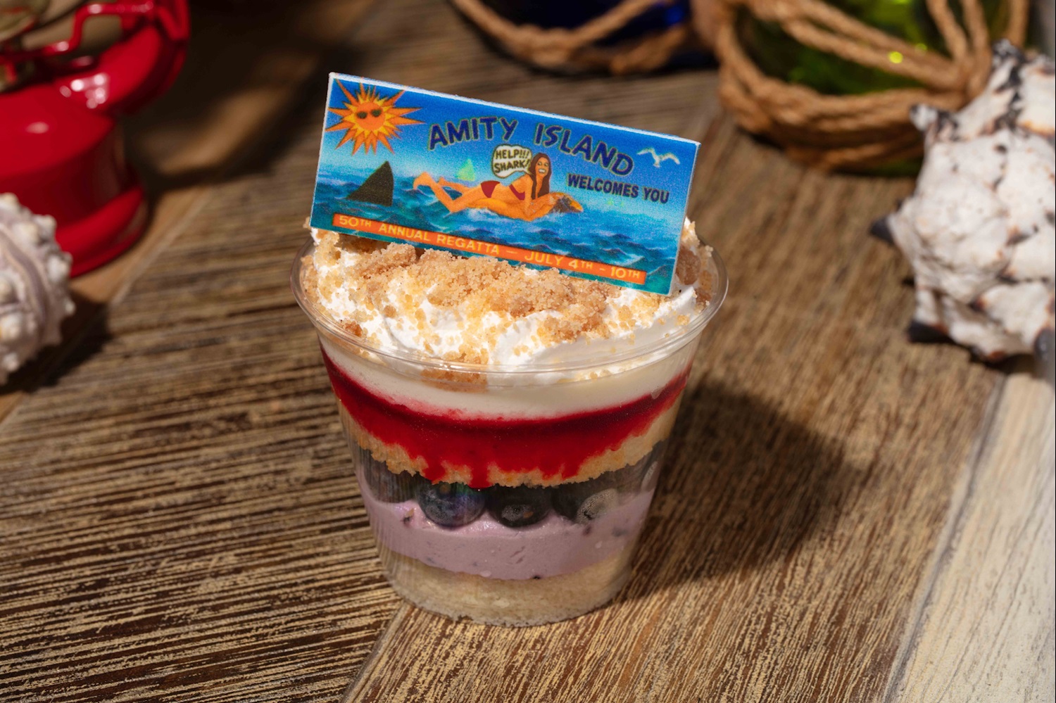 - The Hollywood & Dine restaurant will transform into Amity Island Cafe, serving up items such as Lobster Roll, Vegan Crab Cake Sandwich, Fish and Chips, Fish and Chicken Basket, Shark Bait Burger, Shark Fin Funnel Cake, Amity Island Parfait and Amity Beach Lifesaver Donut, as well as The Shark Bite cocktail and Amity Open Water, a non-alcoholic beverage.