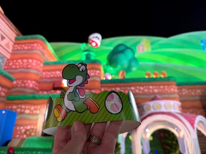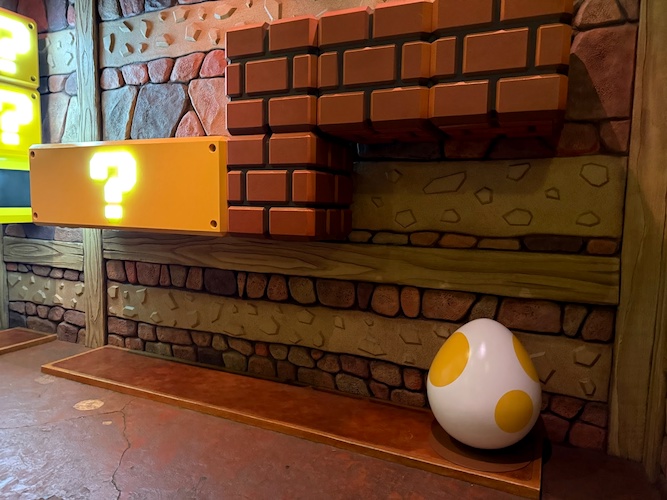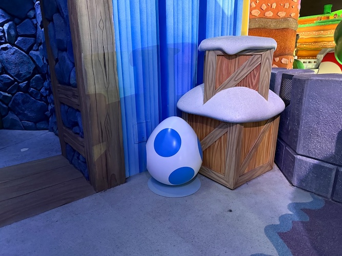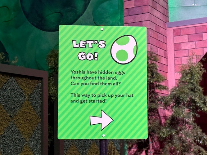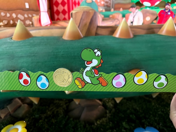 The Yoshis have hidden eggs throughout Super Nintendo World and it's up to you to find them. You’ll begin the experience by picking up a headband before you go to find the large Yoshi eggs hidden throughout the Mushroom Kingdom. Near each egg are team members with stickers, and if you collect them all, you get to meet a pink or blue Yoshi! It should be noted, you will have to have all stickers in order to enter the meet & greet, which is located on the upper level of Super Nintendo World.