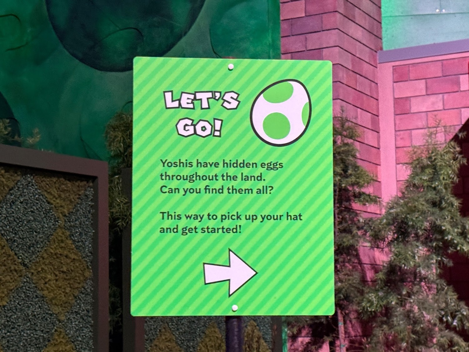 The Yoshis have hidden eggs throughout Super Nintendo World and it's up to you to find them. You’ll begin the experience by picking up a headband before you go to find the large Yoshi eggs hidden throughout the Mushroom Kingdom. Near each egg are team members with stickers, and if you collect them all, you get to meet a pink or blue Yoshi! It should be noted, you will have to have all stickers in order to enter the meet & greet, which is located on the upper level of Super Nintendo World.